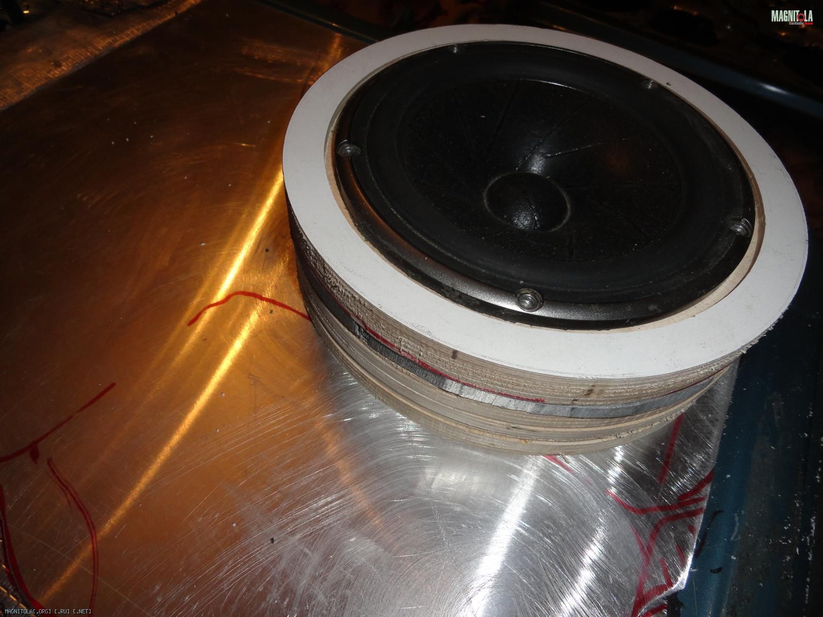 Если одним кольцом то динак остался бы за обшивкой. Нижние кольца больше посадочного диаметра динамика! Но идею вашу я понял, в следующий раз наверное буду делать внутри подиума "конус" расширяющийся к основанию!