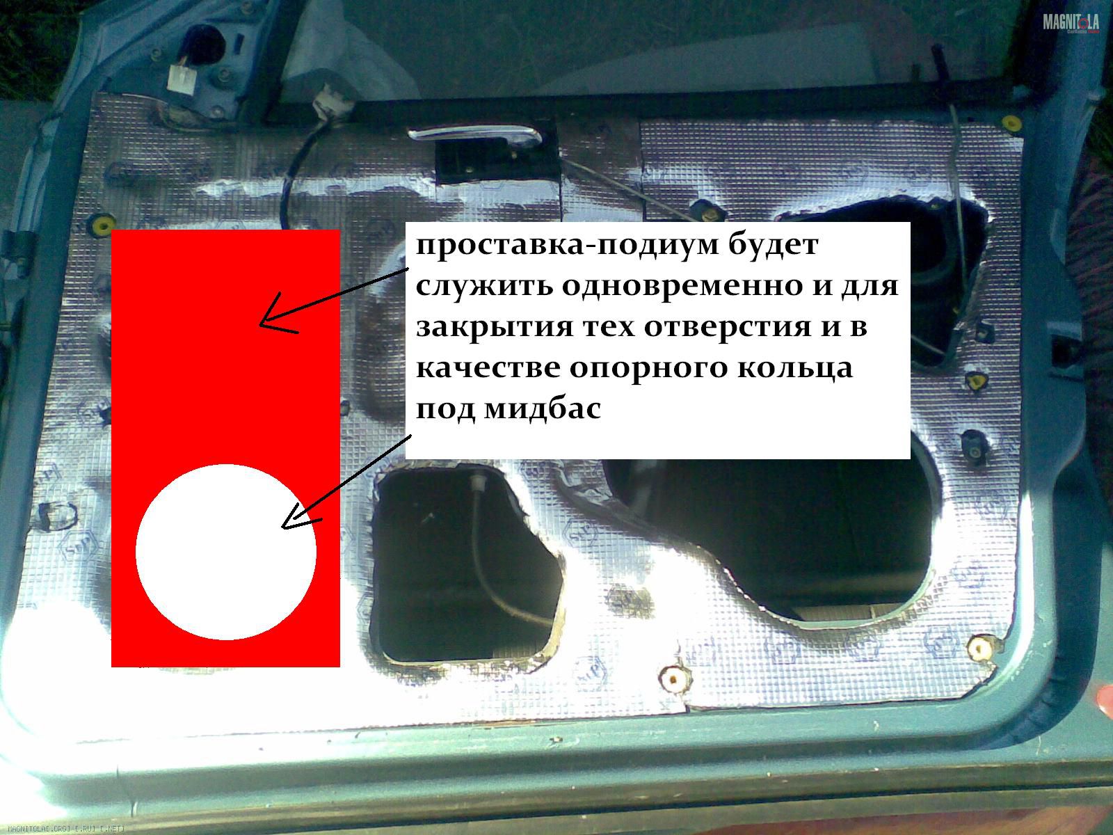 Надо постараться площадь подиума сделать макс возможной .Укрепится внутр сторона двери.А уж под дин набирать толщину необходимую.И убедитесь в параметрах Ваших динов по поводу оформления.