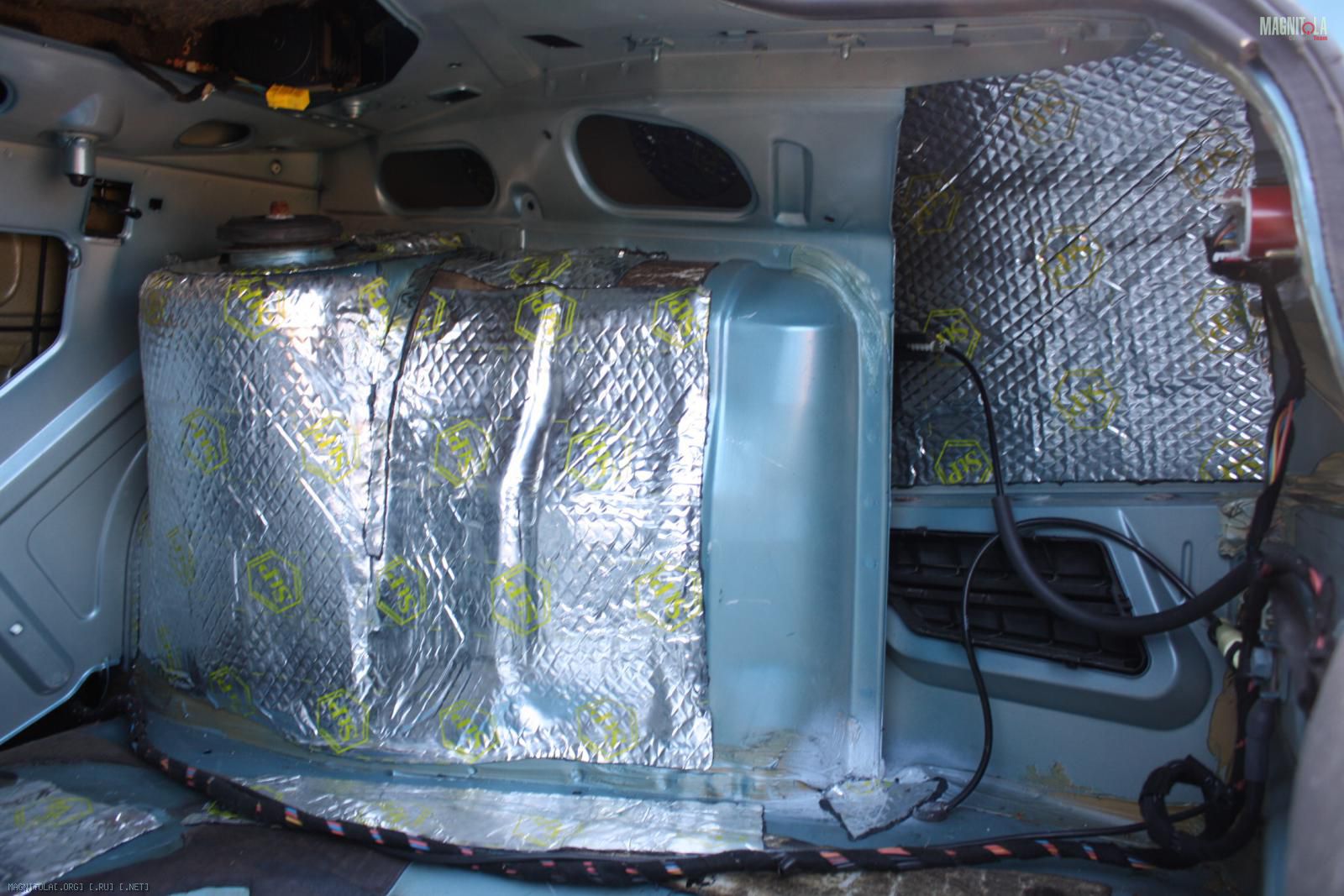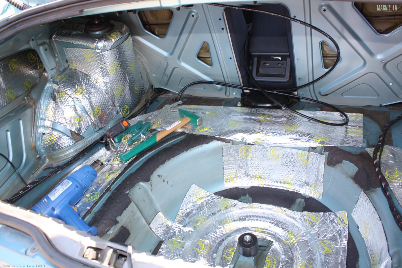 Прошёл ещё один день в гараже, что-то дверями заниматься было впадлу, решил немного разнобразить свою деятельность, и начал шумить багажник, и делать фальш панели! Зашумил без особого фанатизма т.к. саб будет играть в салон, а шума от дороги из багажника особо не слышно, да и просто вибра закончилась)))!Поставленные задачи были выполнены! И в гараж теперь попаду только через три дня, а так хочется уже послушать музыку!(((
