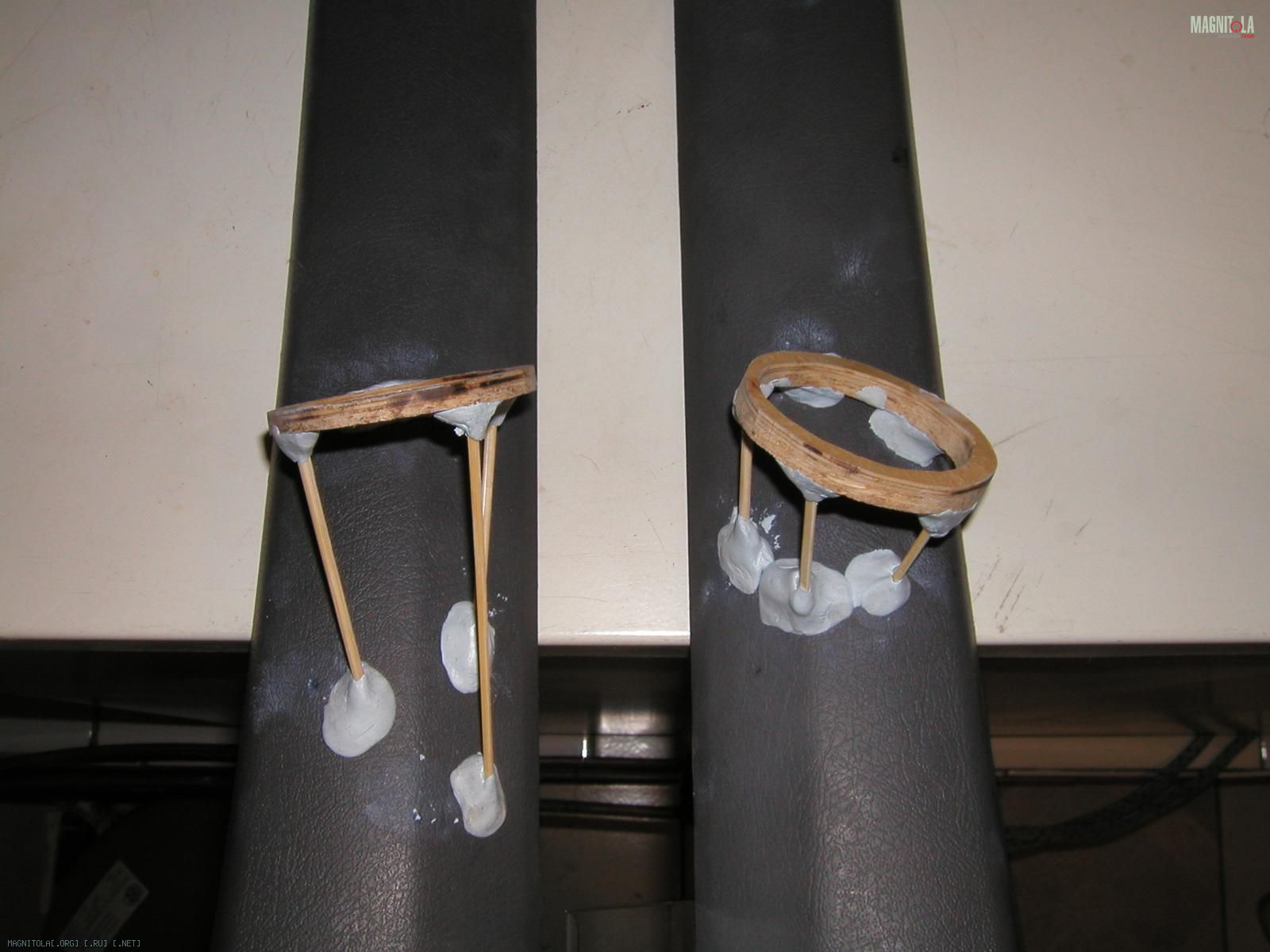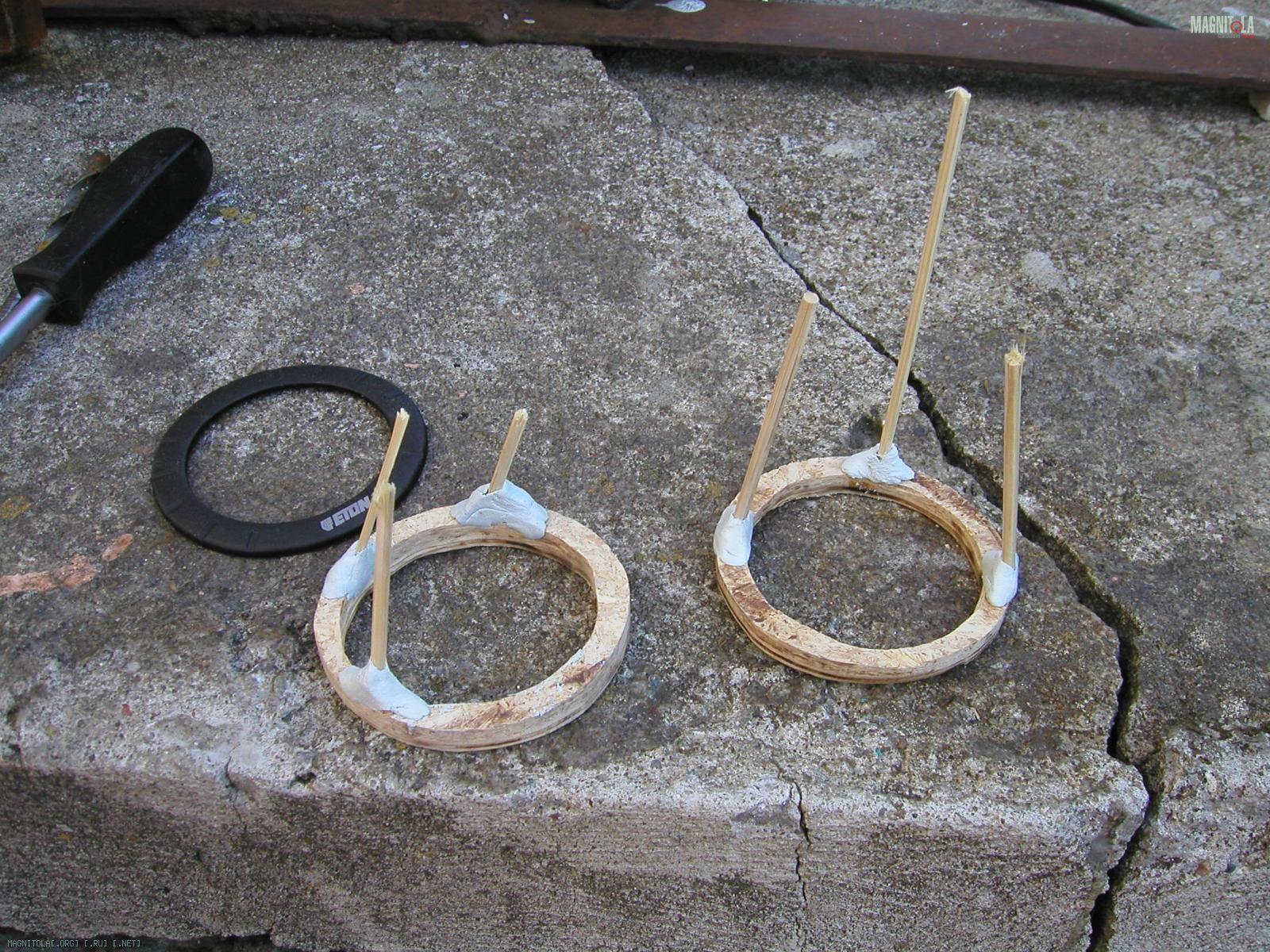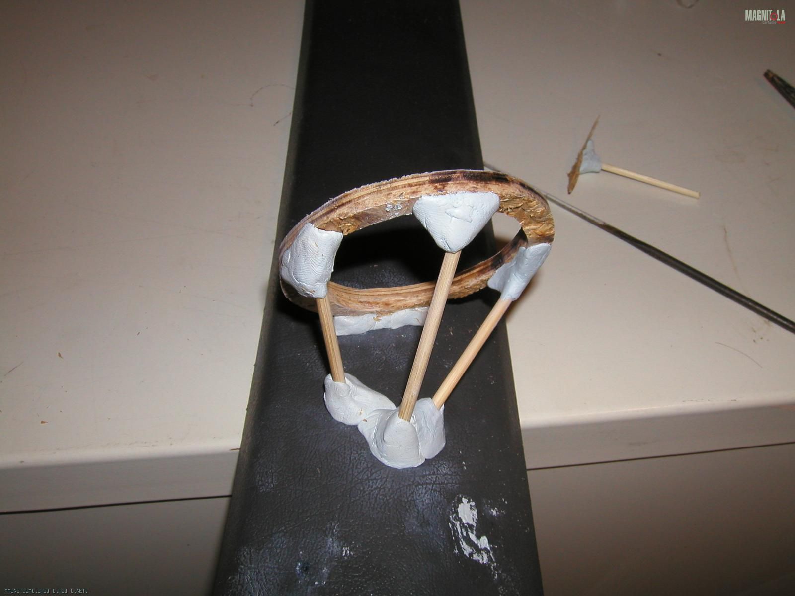 я обтянул колготами стойки, подкорректировал натяжение и покрыл эпоксидкой. К сожалению фотографий подготовки нет, т.к. батарейки в фотике заряжались, но там ничего особенного нет, все и так знают как мешать