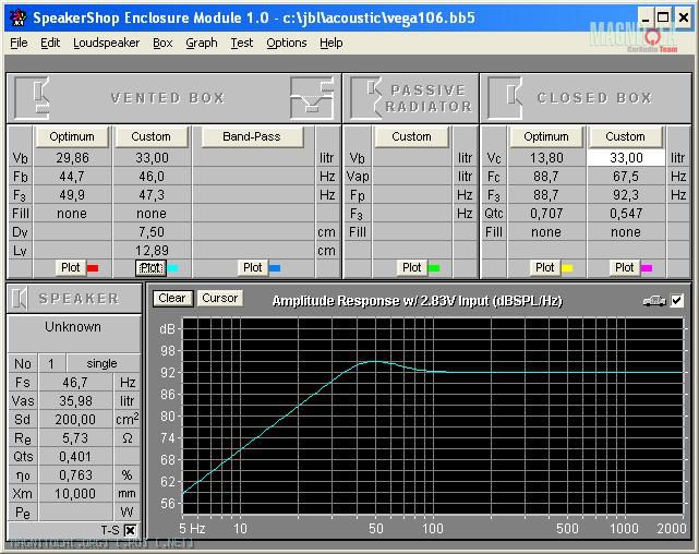 Измерены параметры Т-С басовичка из этой акустики на роль саба, смоделирован корпус с фазоинвертором. Корпус будет использоваться прежний — вместо запаски. Теперь надо сделать новое переходное колечко для короба, замерить параметры Т-С саба в коробе (чтоб наконец-то уже вычислить, сколько в нём литров точно), сделать фазик, настроить.