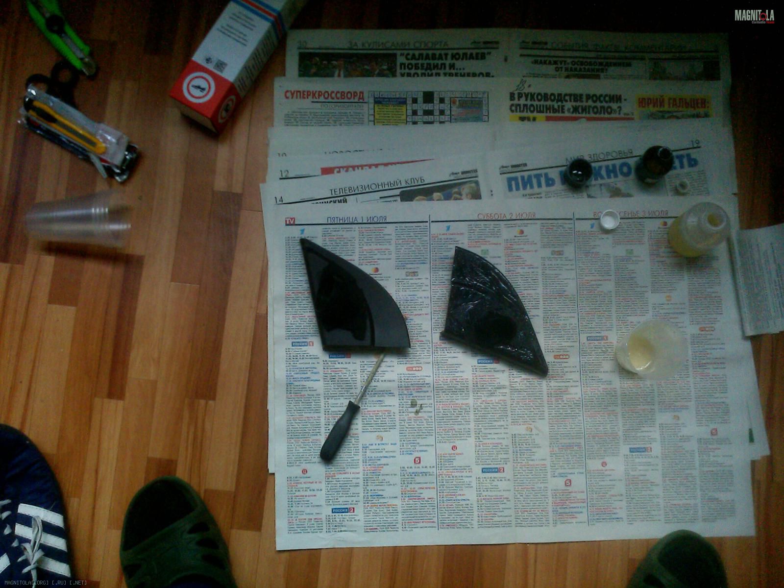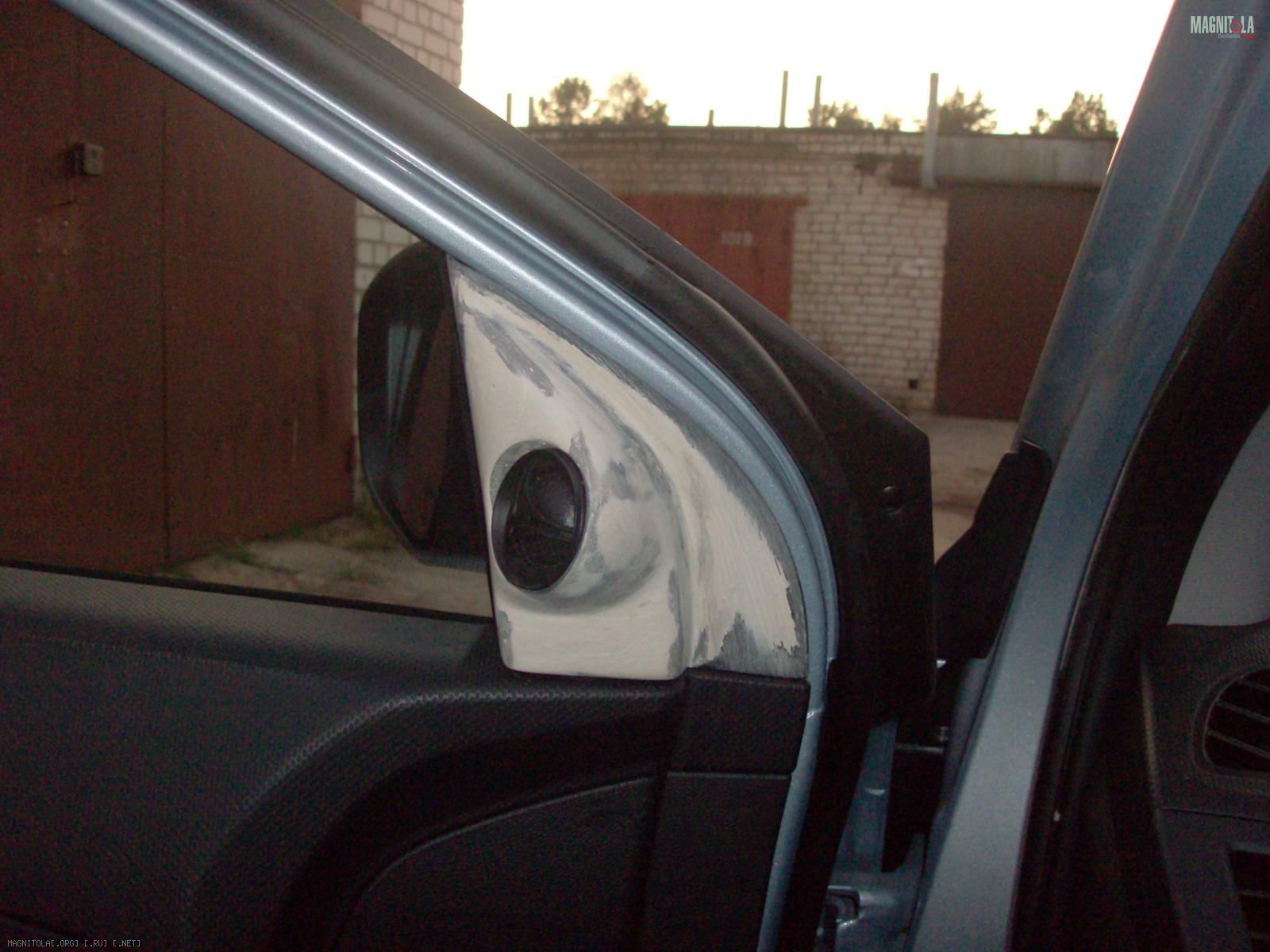 Было решено уставить твитеры в уголки зеркал, очень не хочется на новой машине стойки "портить". Тем более очень удобные пластмасски в уголках, легко снимаются и ставятся за 2 сек.