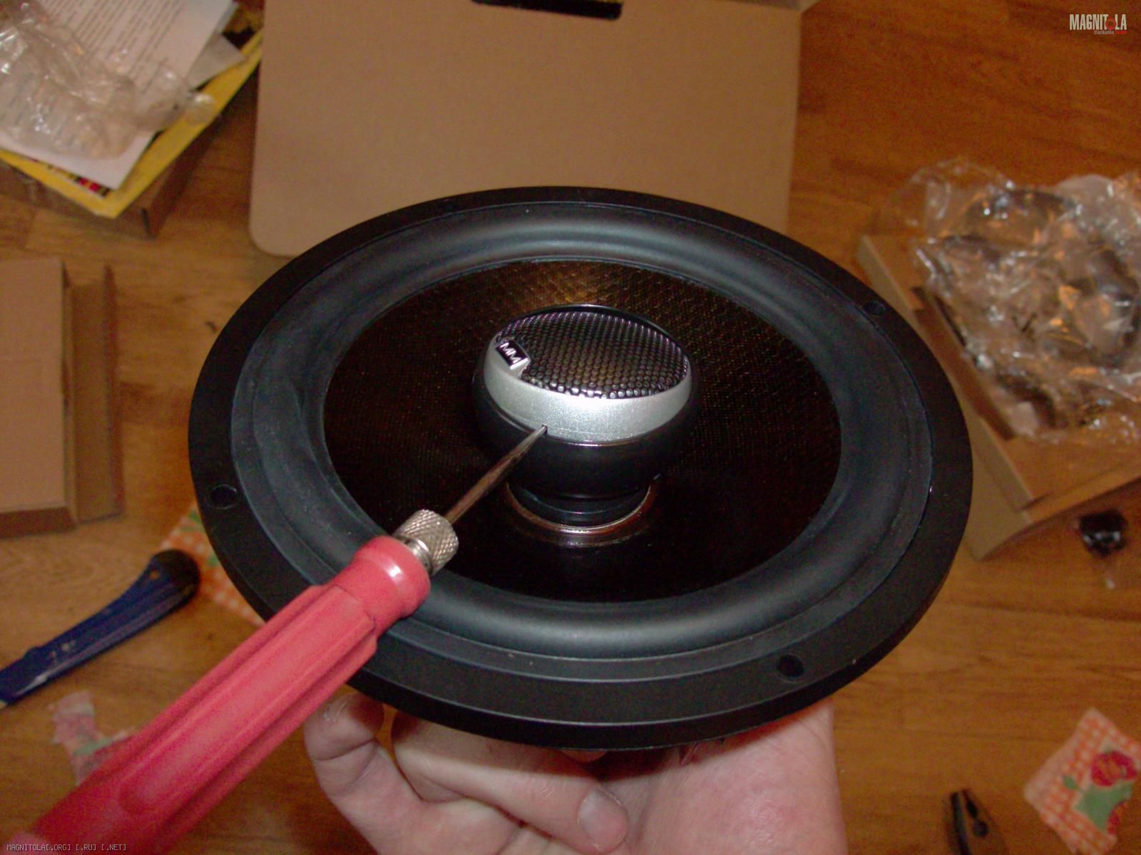 1. Поворачиваем твитер на макс угол, поддеваем шилом за паз.