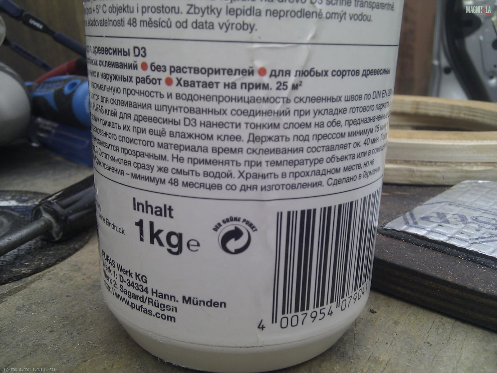Клей покупать не стал, в запасниках был найден вот такой клей, написано что он для влагостойких склеиваний дерева и производных