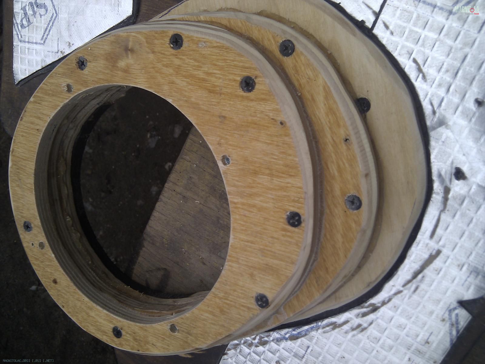 Собрал подиум, хрошенько проклеив кольца между собой и затянув все на саморезы.