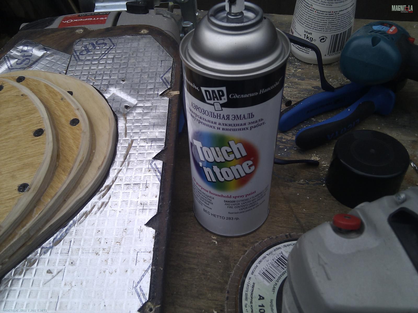 Краска нашлась вот такая, обычная акриловая, но думаю ее вполне хватит для защиты фанерки от влаги