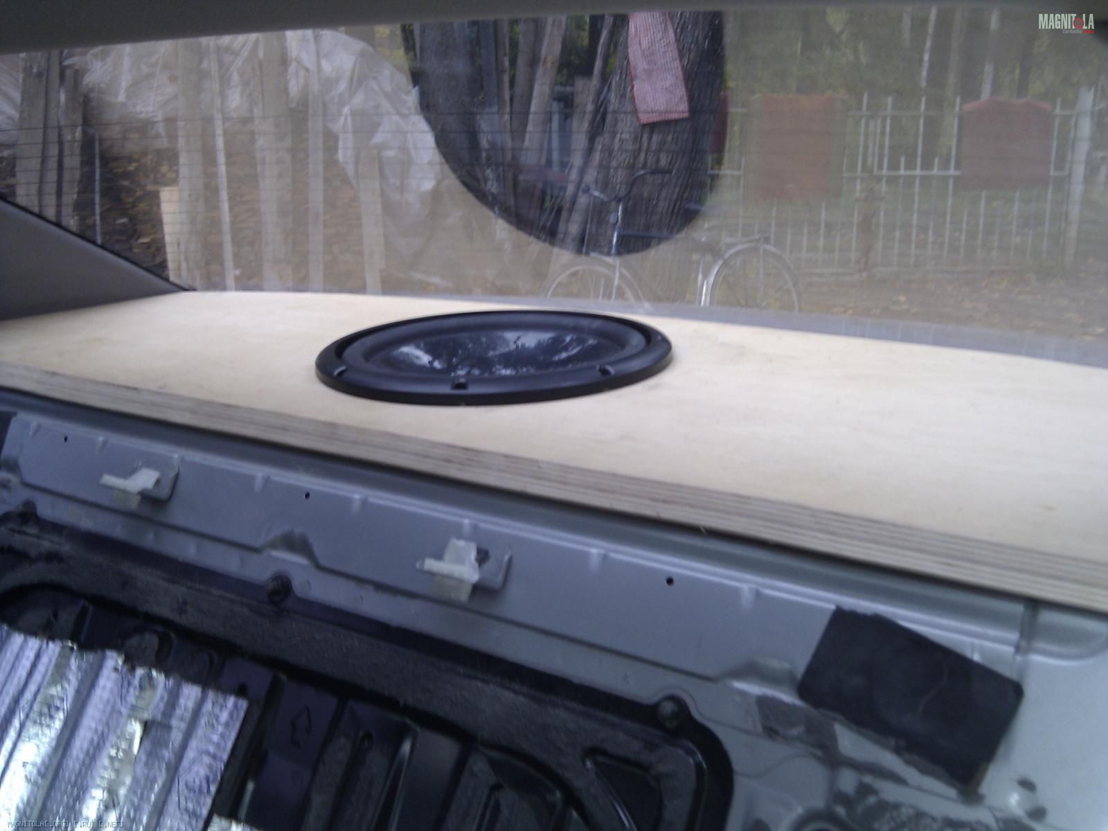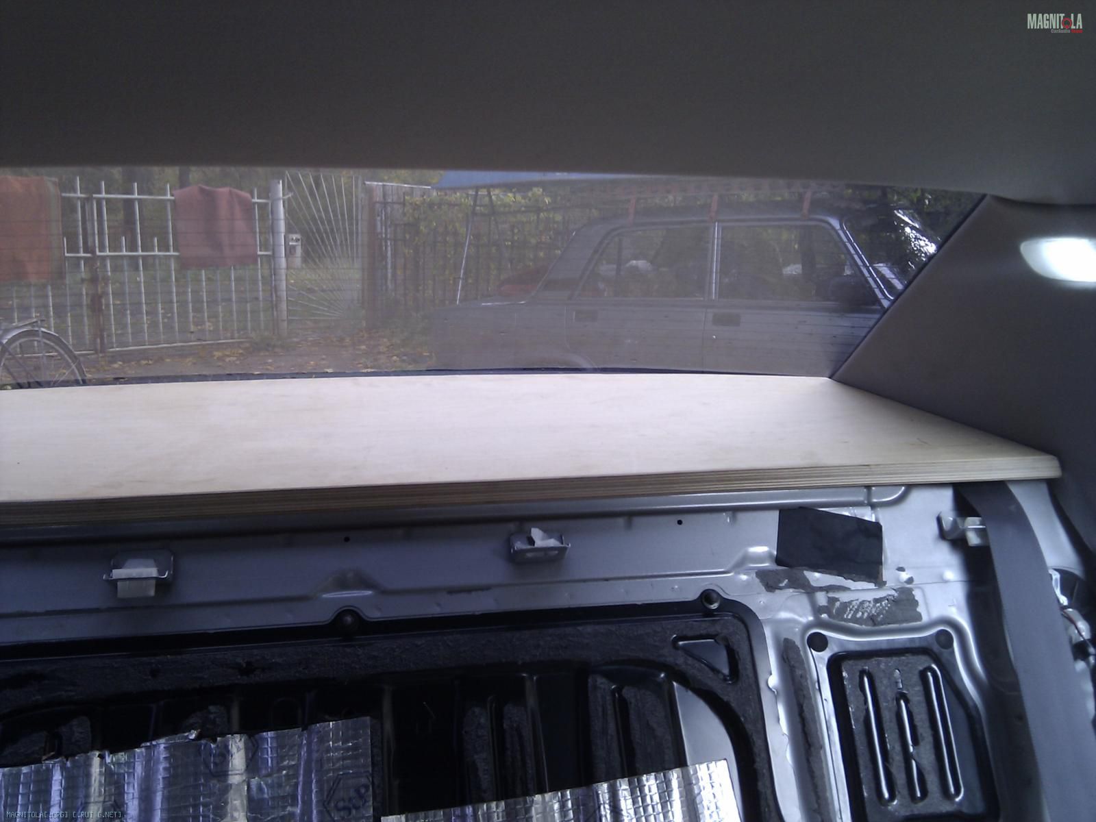 Следующим пунктом будет полка для саба, сейчас баса нету, есть только невнятное пуканье, от которого трясет машину, на следующие выходные поеду на дачу за остатками 21 фанеры, там как раз куски нужного размера ну и лобзик там есть.