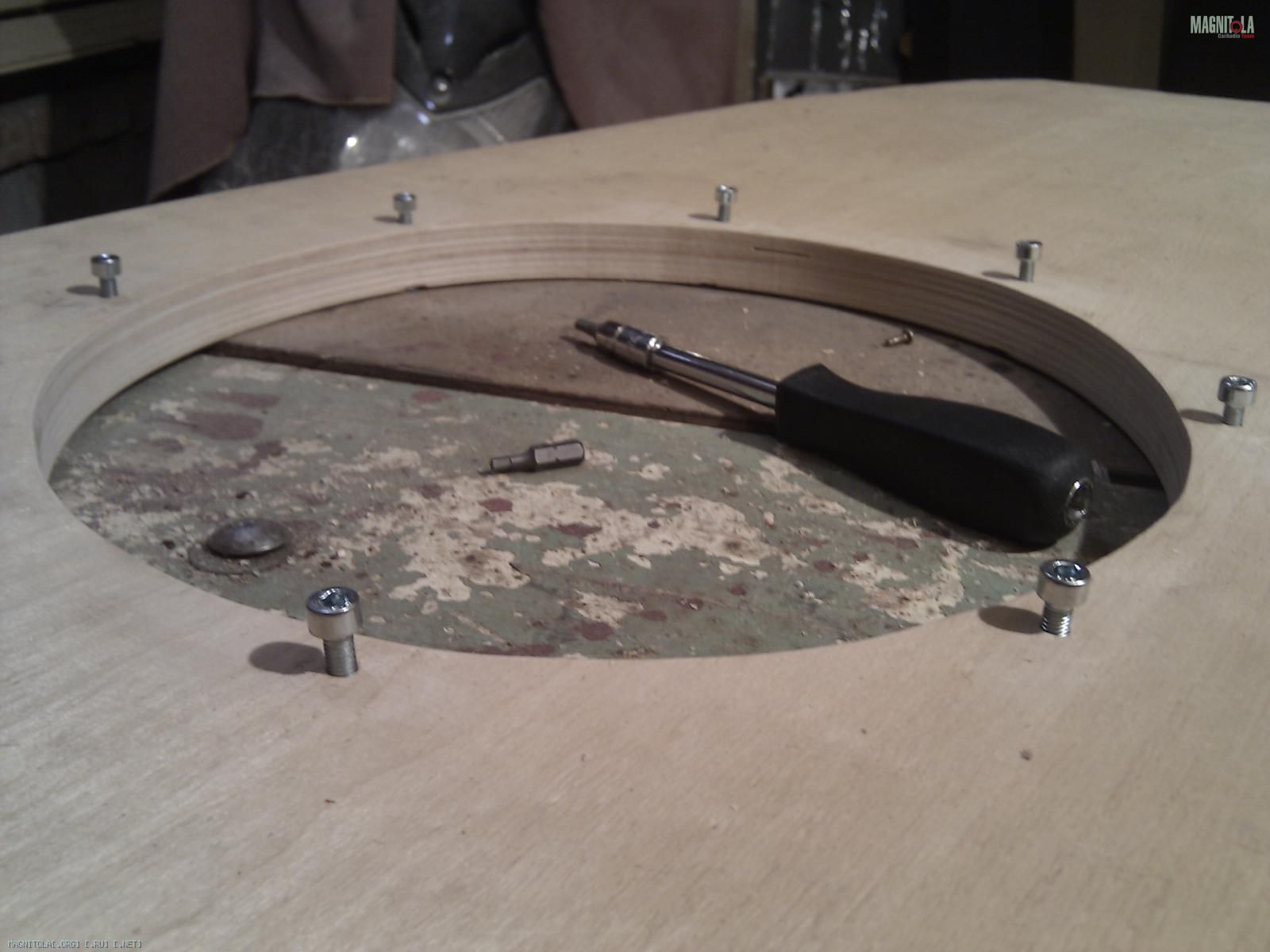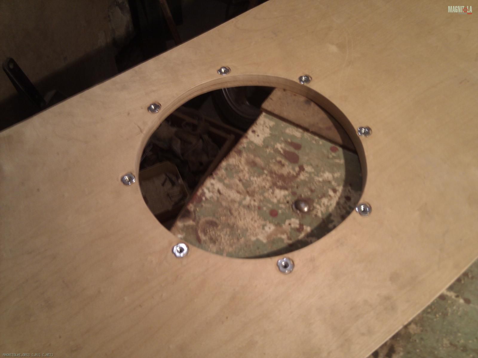 Примерил дин, все подошло. Четвертый болт не завернут т.к. при его закручивании я умудрился сорвать усовую гайку. Вердикт такой, болты вкручивать аккуратно, не торопясь, если не идет поменять гайку, а то выйдет как у меня, гайка скрошила фанеру...