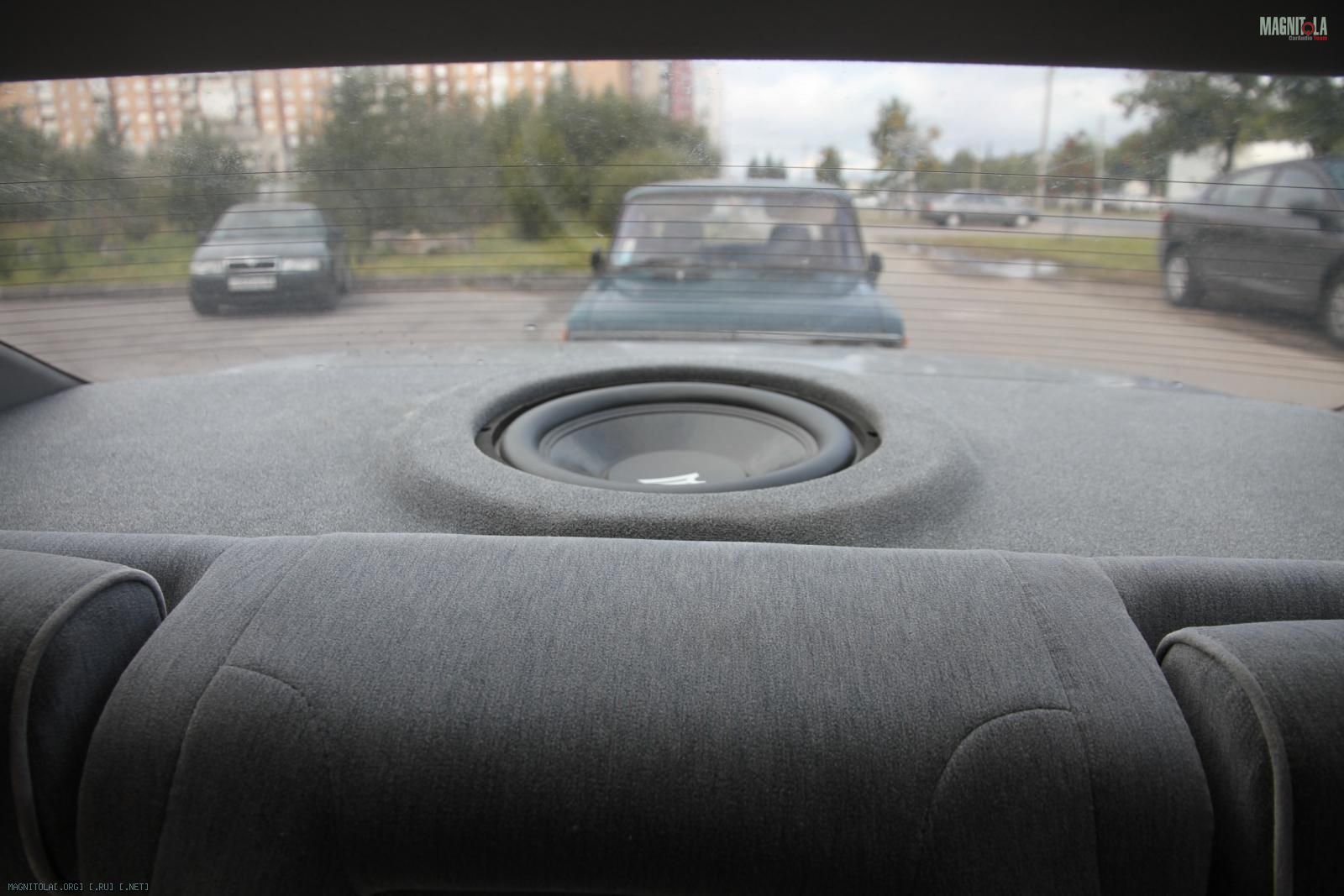 Собственно теперь по мелочам расскажу. Итак, полка из фанеры 24мм, на нижней части сделаны доп ребра из фанеры, т.к. полка авто под наклоном идет. Полка проклеена спленом, на металл положена вибра стп голд и бимаст бомб. Полка крепится на усовые гайки под болт м10 на шестигранник. Притягивается вся эта штука из багажника, на болты с шайбами. Болты вкручиваются из багажника и не торчат из полки по причине подгона по месту, закручивал, отрезал болгаркой, потом снова закручивал и так до тех пор пока длина болта не становилась нужной.