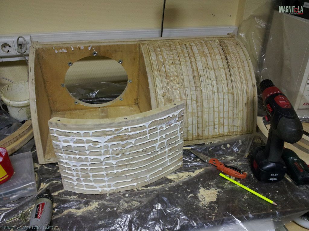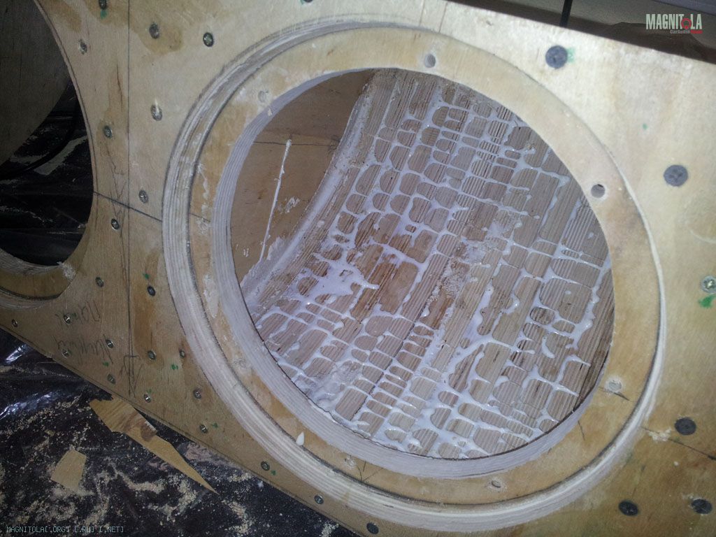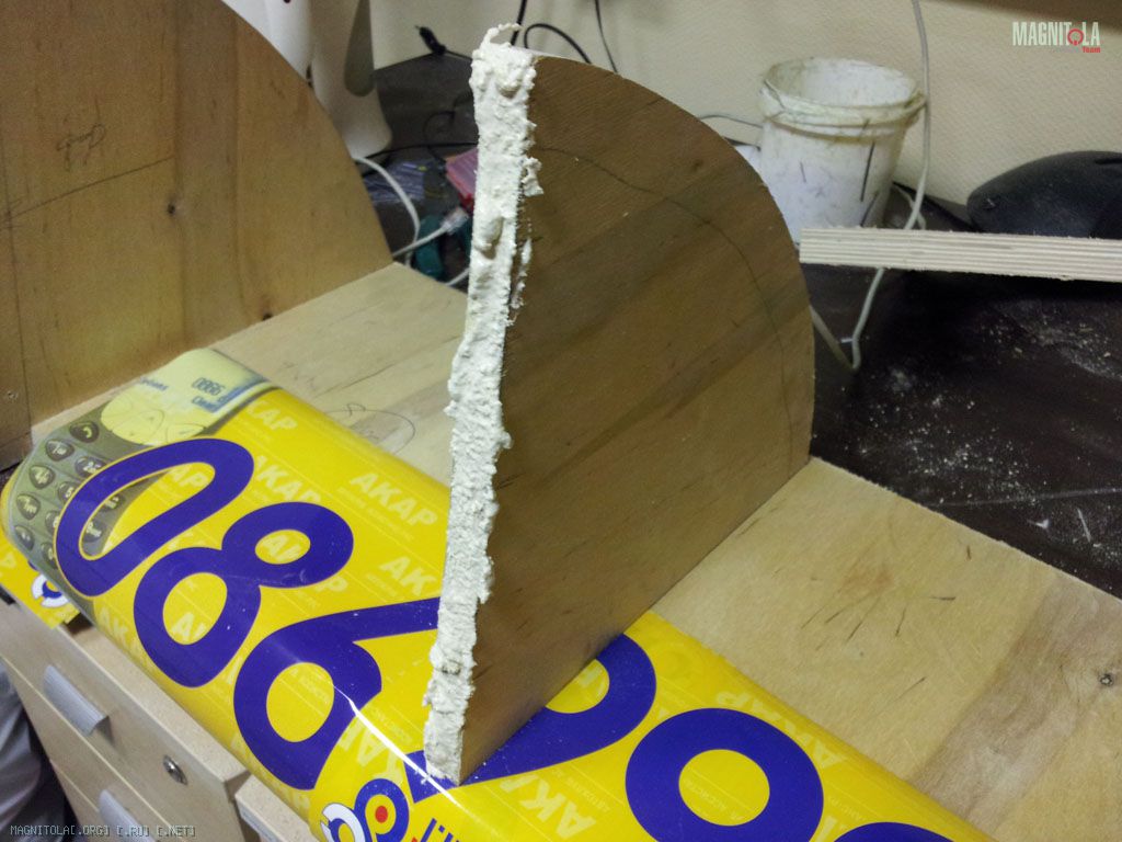 И вот оно высохло. Надо полкруглую стенку делать. Стеклоткань и все такое...