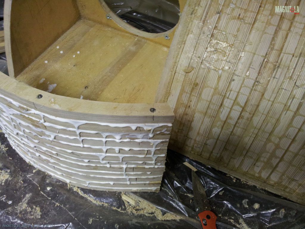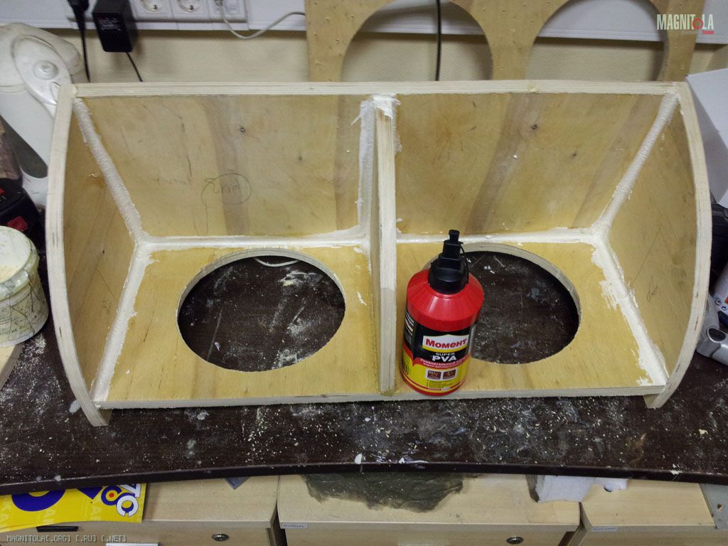 ПВА гигроскопичен, хотя дерево клеит хорошо. Для защиты от влаги настоятельно рекомендую сошлифавать все подтёки клея снаружи (чтобы открыть дерево) и обработать корпус снаружи чем-нибудь для защиты от влаги: эпоксидкой ли, краской, лаком - пофик.