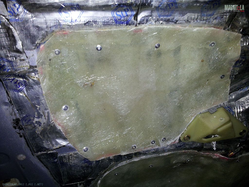 Края обрезал, посадил на вытяжных заклепках (прикольно кстати, первый раз попробовал закрепить на заклепках) и закатал сначала СТП голд, а потом еще и битопластом