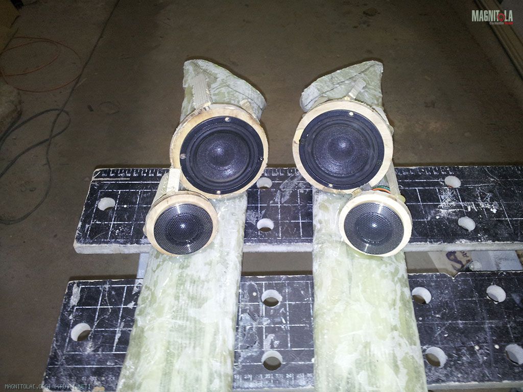 А еще переделал стойки. В первом варианте СЧ и ВЧ смотрели по сути в противоположное окно. Не послушал умных людей. И получил резак. Не то чтобы прям пипецкий, но явный. Разница с открытым и закрытым стеклом была чудовищной.