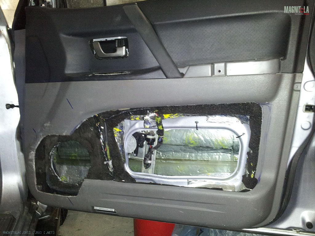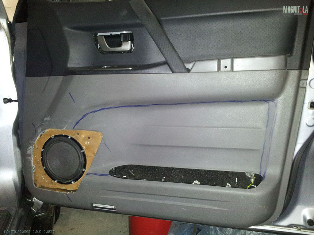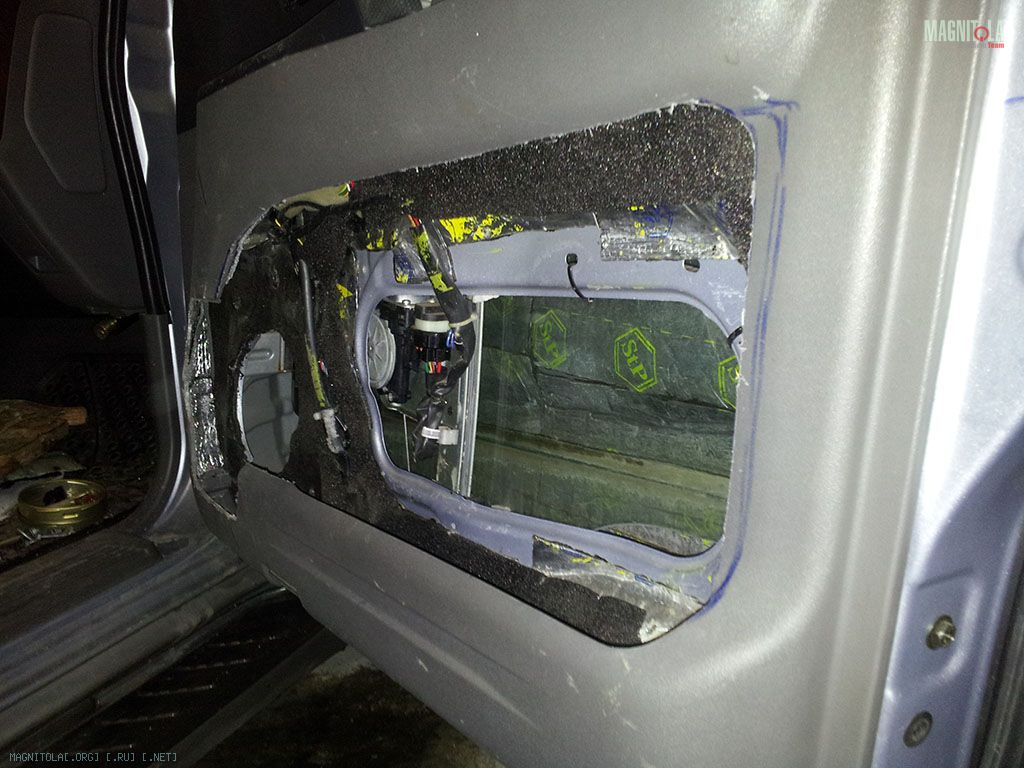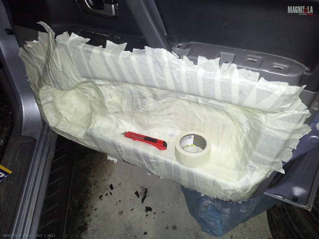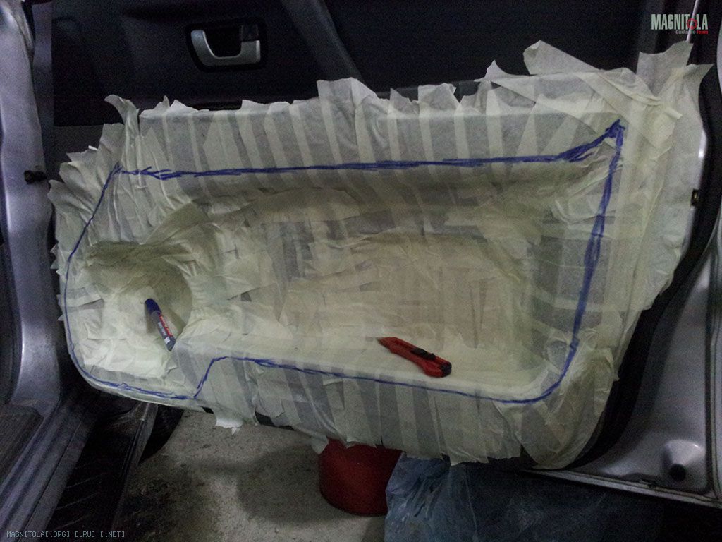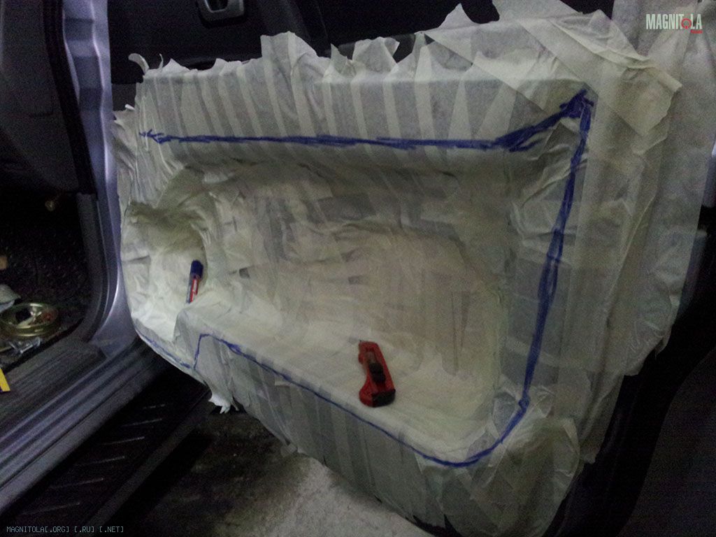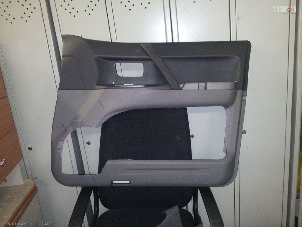 Последние два дня мучительно решался на акт вандализма. В смысле порезать обшивки под дверные ящики. Вроде и так уже дырки под динамики вырезал, а все равно страшно. И вот сегодня утром (все равно там полная опа на дорогах) решительно загнал ероплан в полутеплый бокс.