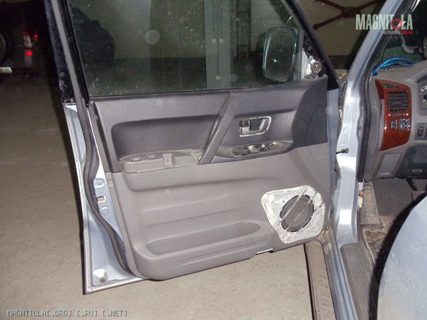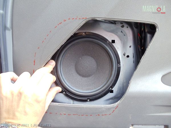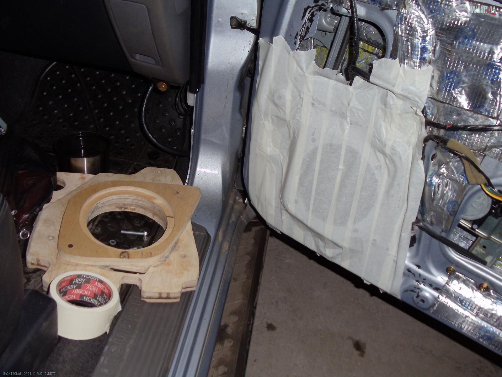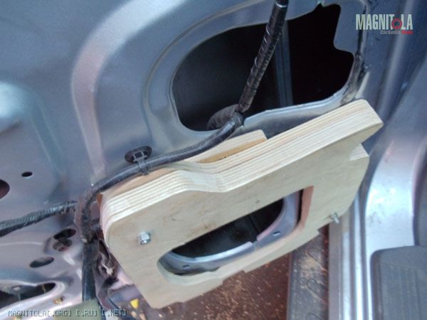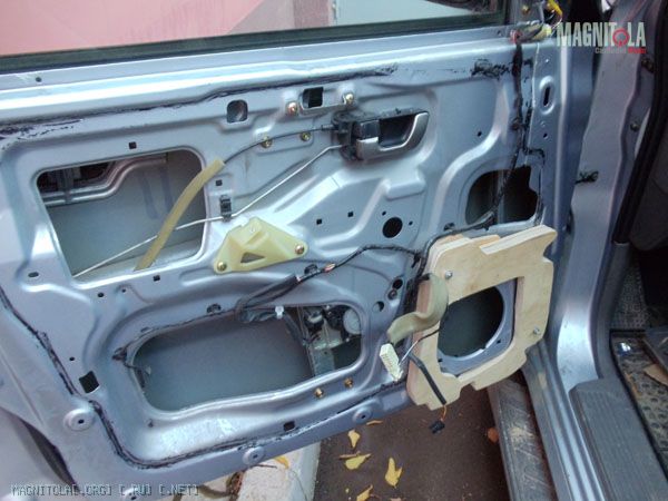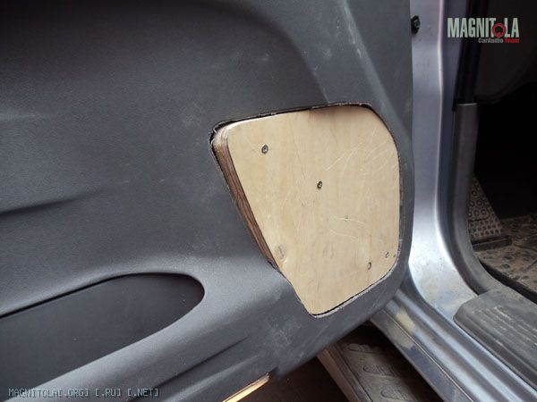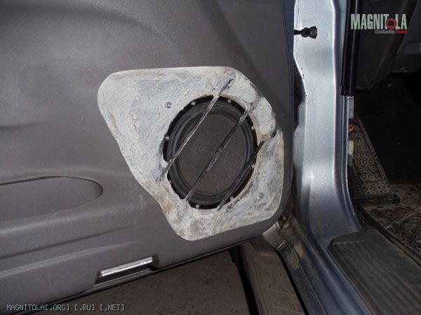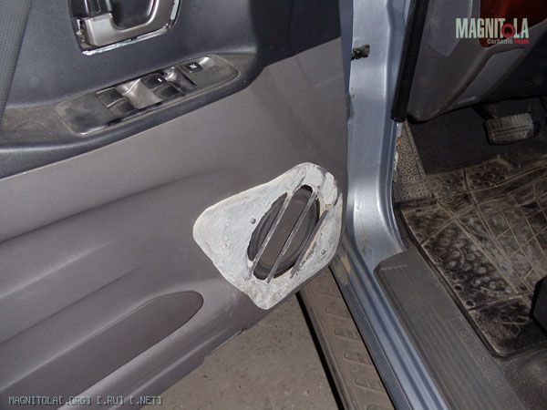 Хотел направление сориентировать с линией дверной ручки, но получилось что есть вероятность задеть ногой динамик. Чутка развернул прутья. Осталось выровнять окончательно, зашпаклевать где не попадя и покрасить. Сначала антигравием, а уже потом краской. Или черной или серой, пока не знаю. Бум посмотреть.