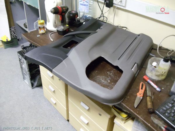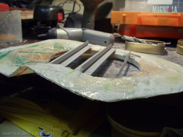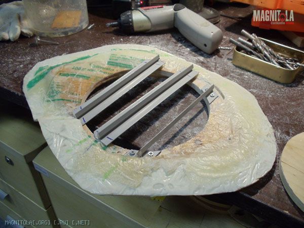 Оставляю сохнуть, отшкуриваю, в принципе основание под динамик готово.