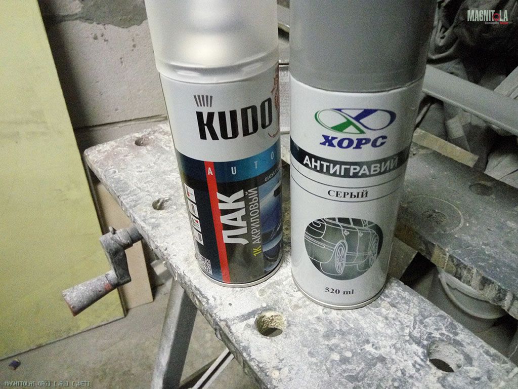 Метнулся в автомагазин, купил баллон антигравия для цвета и фактуры и баллон прозрачного акрилового лака - шоп блестело и ваще красиво.