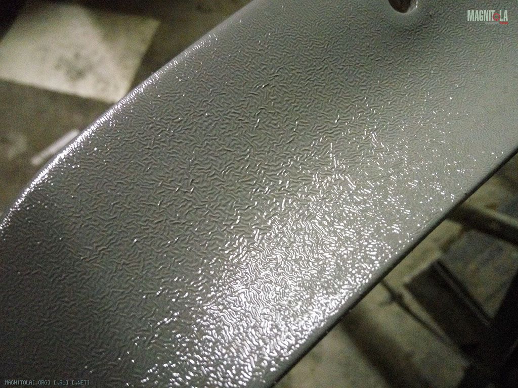 Велико же было мое разочарование, когда отечественный антигравий после двух слоев с промежуточной сушкой дал ровное как краска покрытие. Делать нечего, оставил как есть.