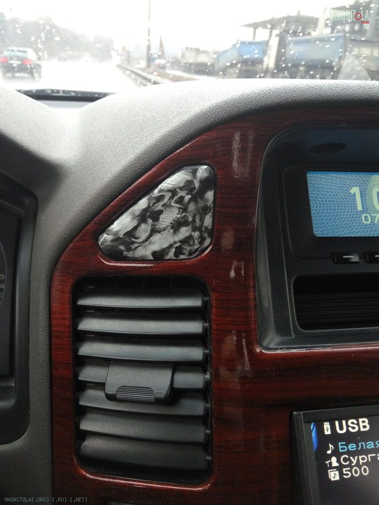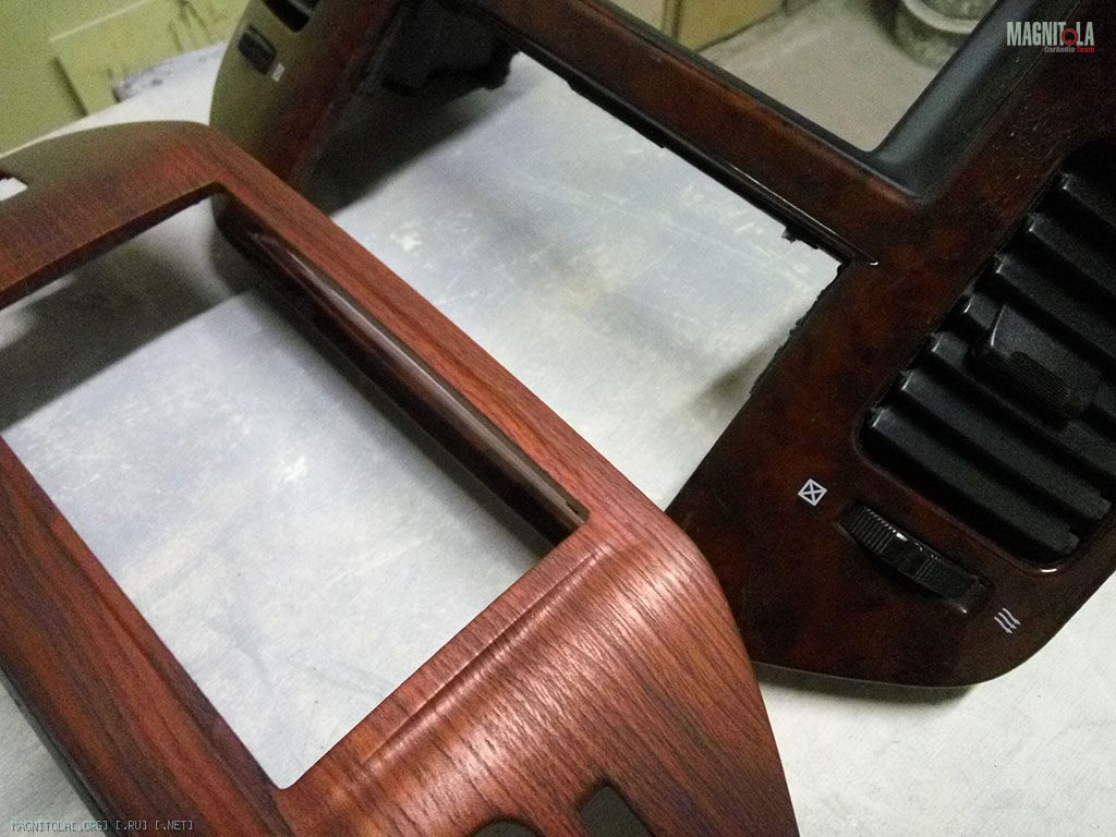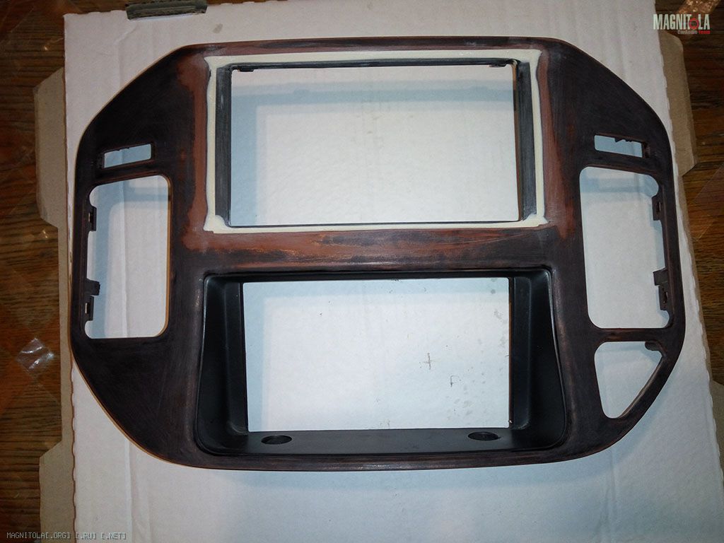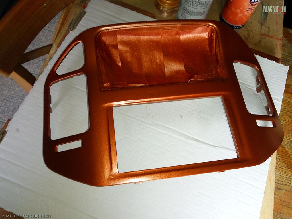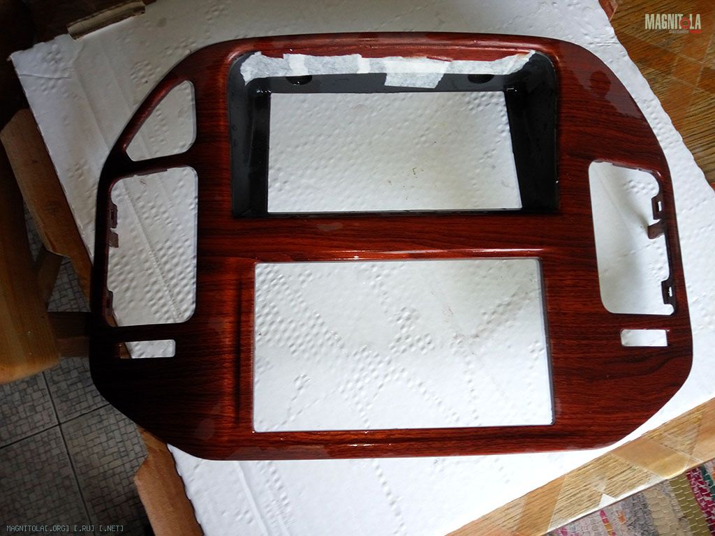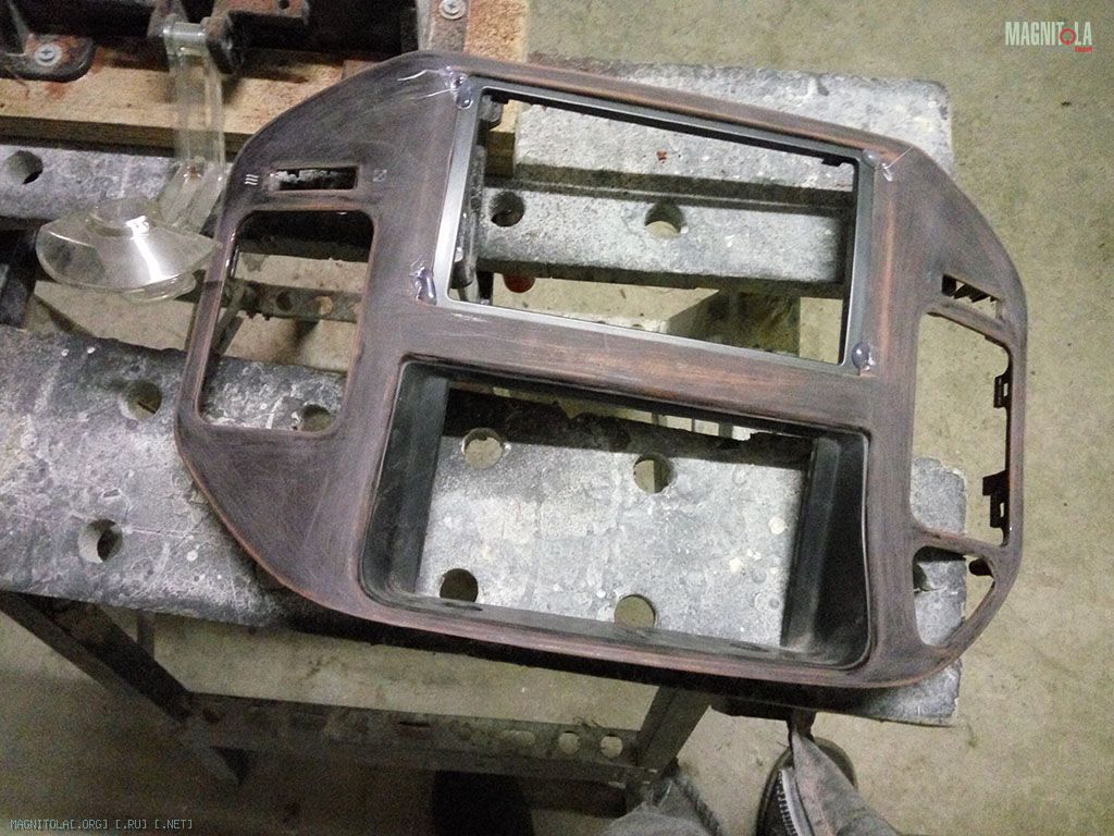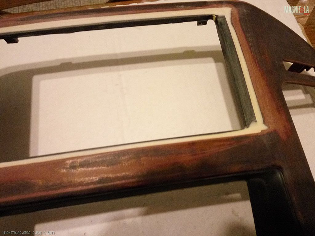 Штатную пластмасску было жалко резать, купил на разборке еще одну. И надругался. Подпилил под размеры рамки отверстие,закрепил детали термоклеем и с обратной стороны объединил при помощи шпатлевки со стеклом