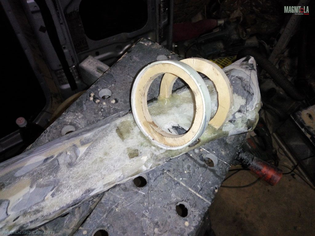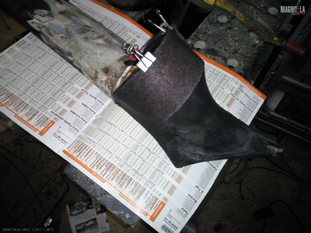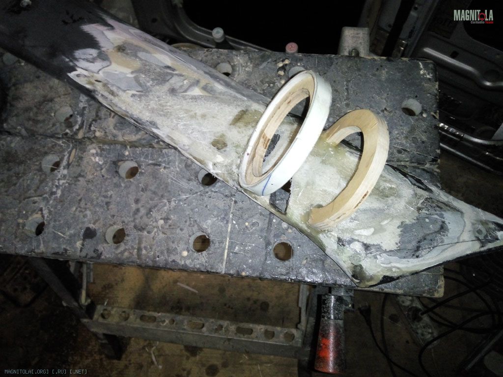 Поселив ВЧ в уголках, продолжил мучить стойки. Восстановил более-менее ровно место установки сисек. Покурил. Еще покурил. И решил что не хочу я плавных переходов. Будет грубо, по мужски.
