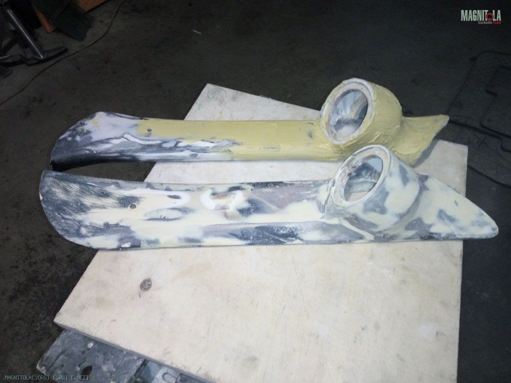 Накладки уже обточены, зашпаклеваны, ровненькие, только чтот фотосет забыл сделать. Все это окончательно выведется и обтянется биэластиком. Возможно накладки будут другого цвета относительно стойки.