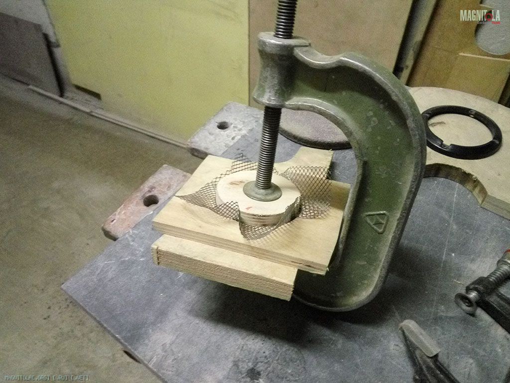 В гараже достал богатство, распотрошил, вырезал фанерные оправки, струбцина, обрезать лишнее, подточить острые края на бруске: