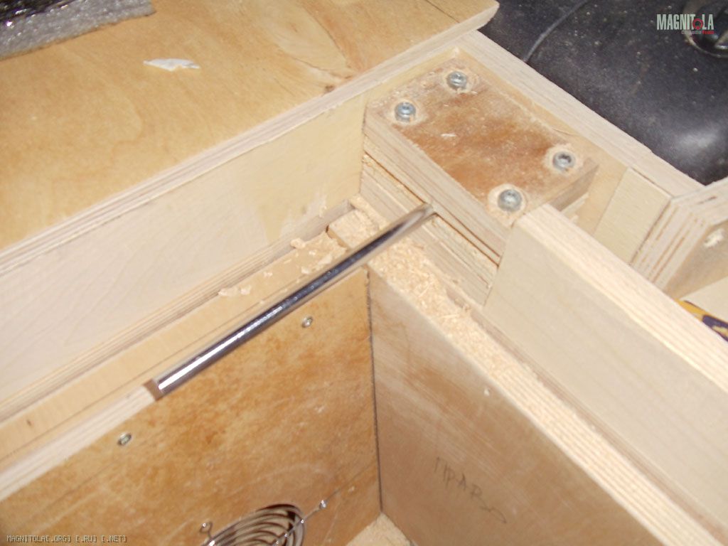 Ящик фиксируется с одной стороны деревянными петлями, а в открытом состоянии еще будет прикручиваться болтами к основе фальшпола, как раз поэтому я и пилил из 20тки. То есть в боевом состоянии это будет практически одна здоровенная, массивная конструкция.
