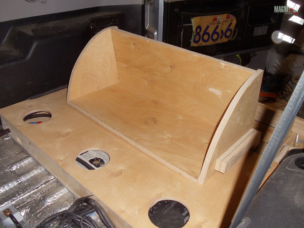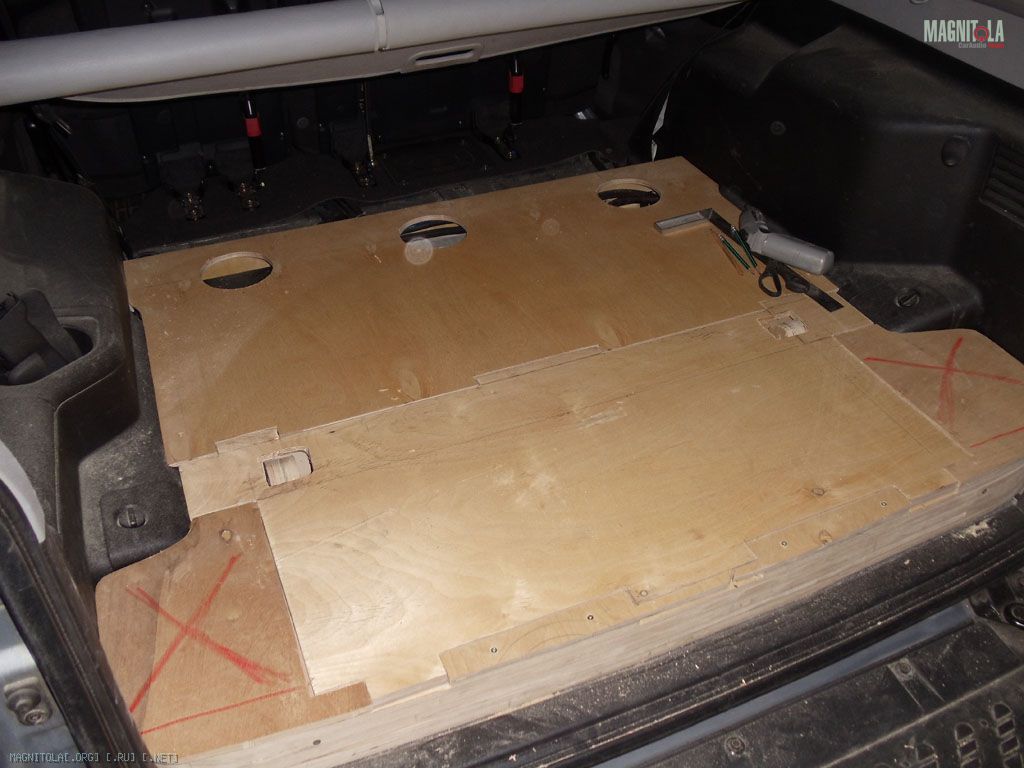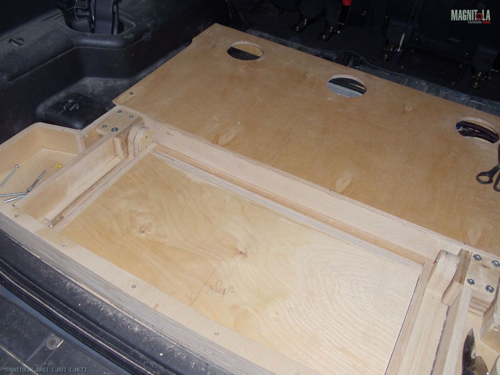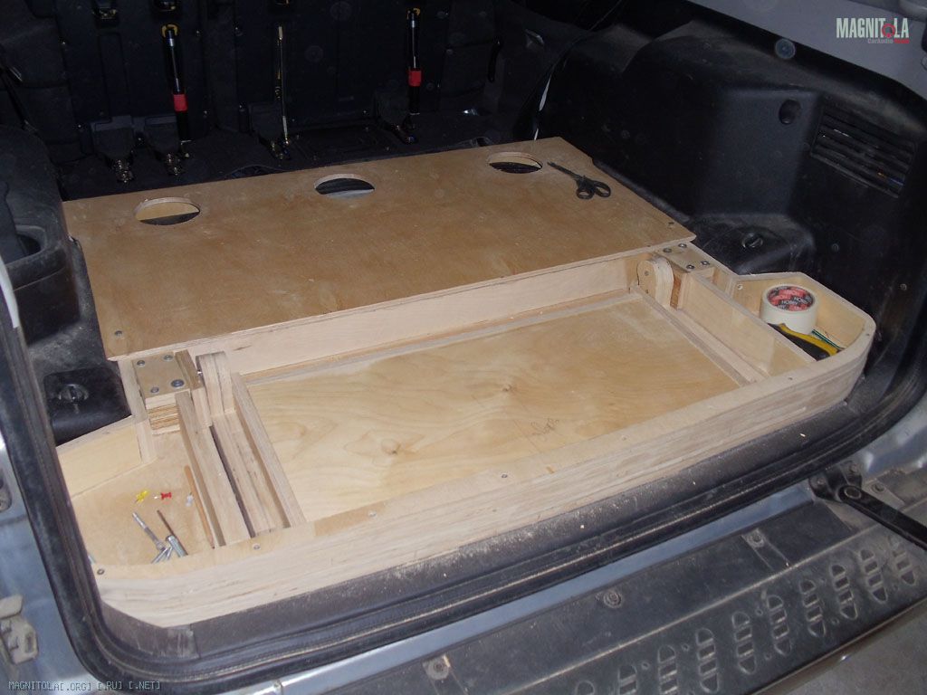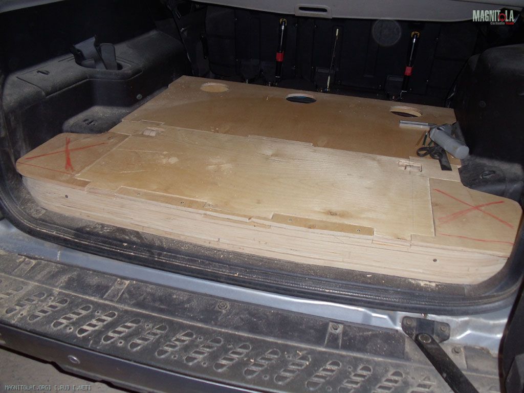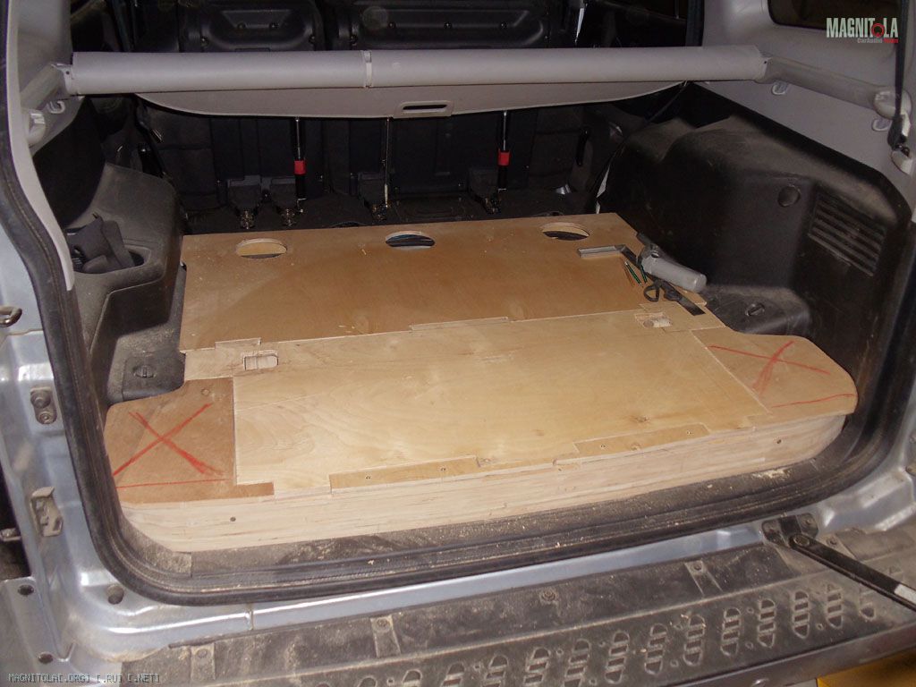 В свою очередь основание фальшпола будет намертво притянуто к полу багажника, там достаточно дырок под 8мм от элементов третьего ряда сидений. Пока руки не дошли просто =))