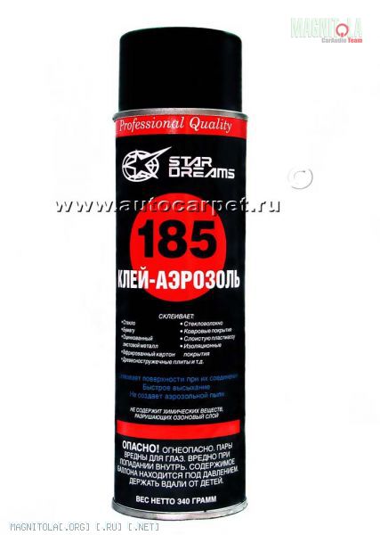 Кароче путин, клей для карпета, APOLLO 96 желтый балон с зелеными буквами, это похоже аналог 185 которого сейчас нет. Я работал с обоими. Преимущество спрея что он пропитывает карпет и хорошо приклеивает к детали.