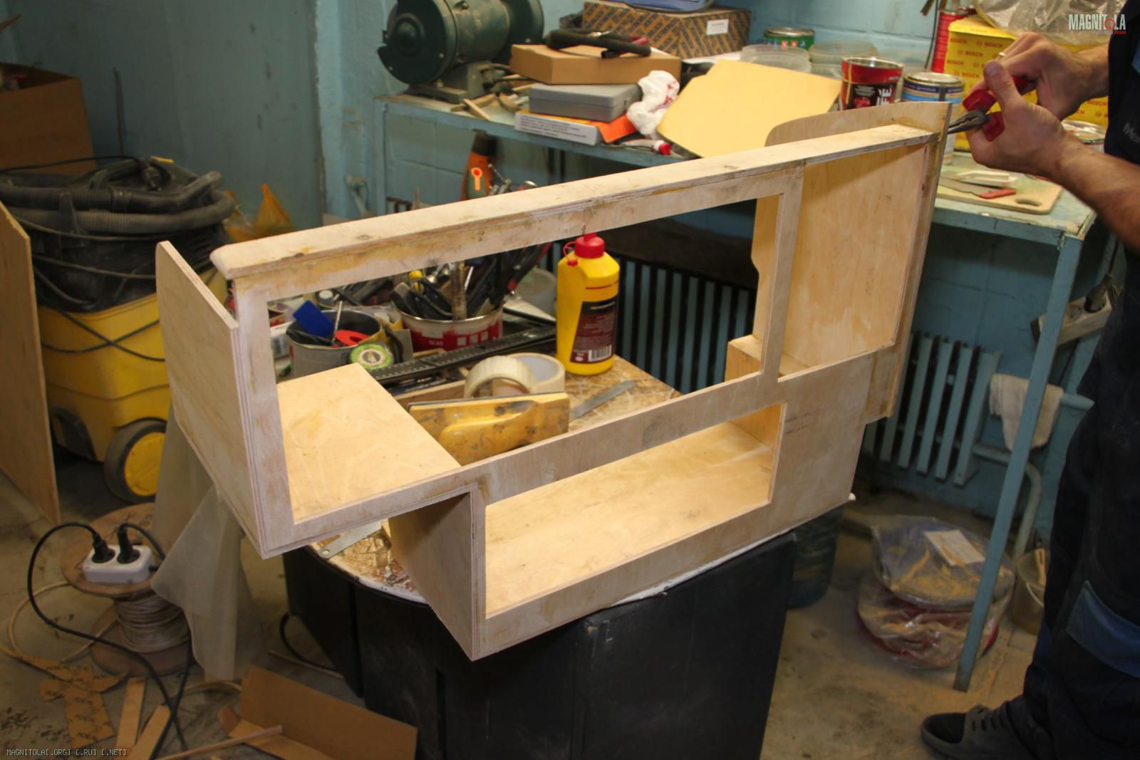 Изнутри выложен ольховыми опилками и пролит полиэфиркой.