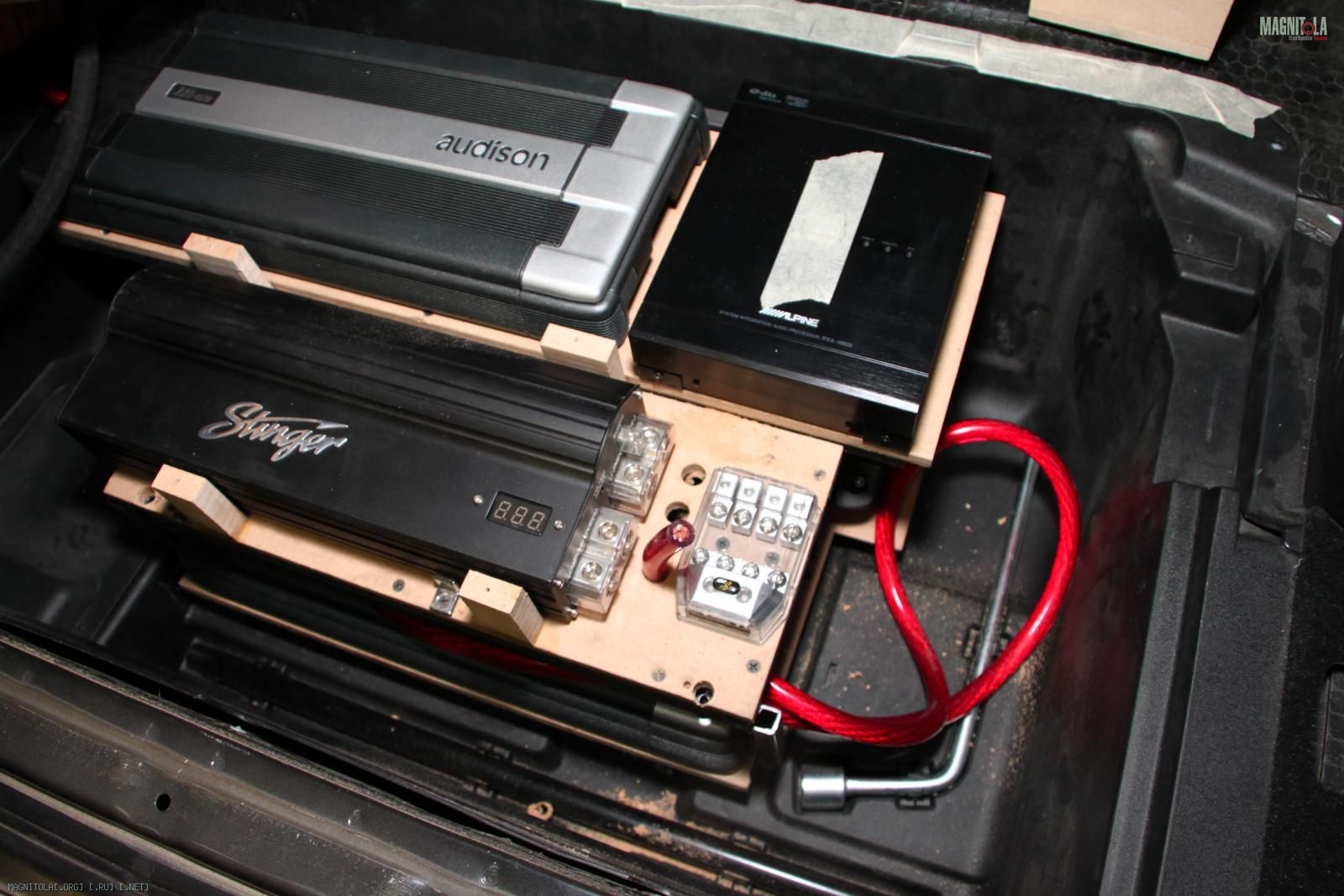 А так же куча проводов, полная шумка машины, перетяжка потолка алькантарой и салона, местами кожа, дерево и прочие моменты, украшающие авто.