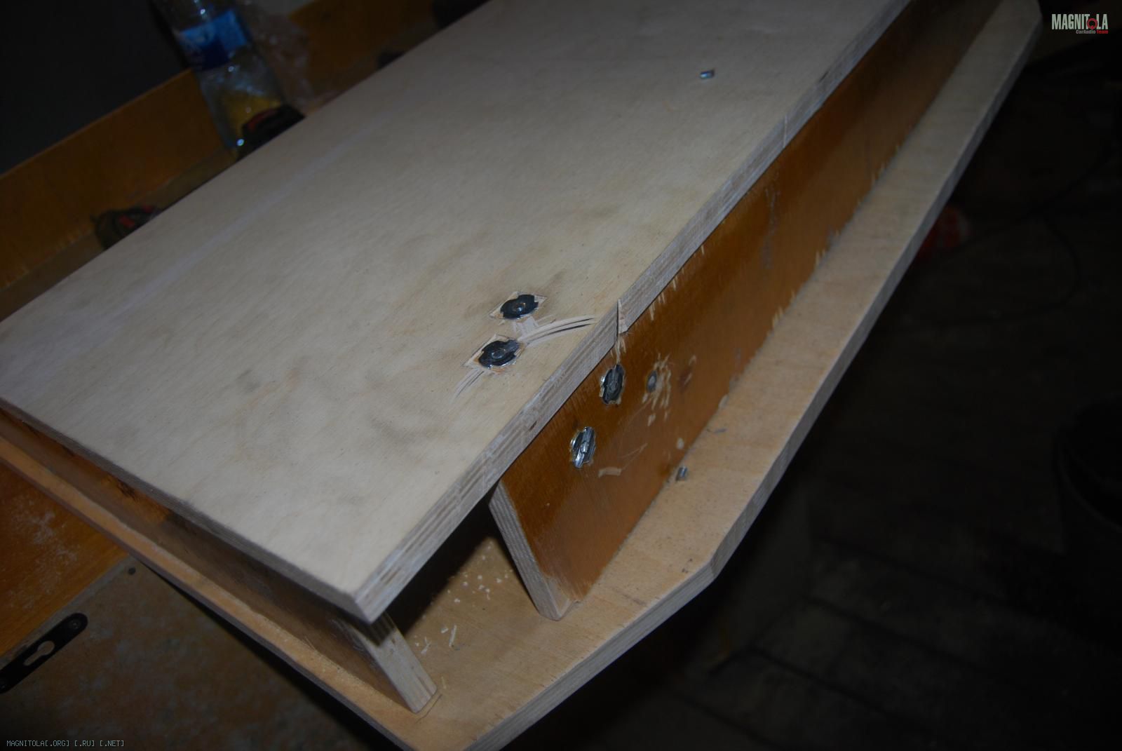 что имеем: прикручены стенки и перегородка (крепил на саморезы и клей ПВА). Установлена одна крышка (над усем и чейнджером.....долго намечал навес "тансформер", что-бы крышки не мешали друг-другу и все было стык в стык....