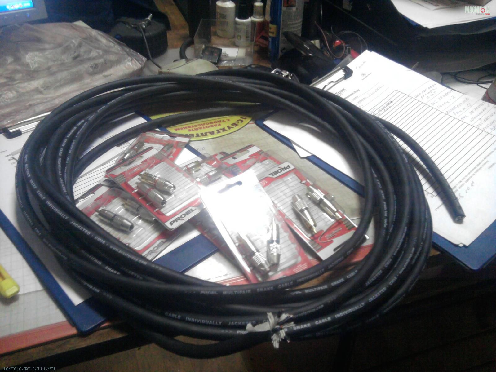 проводка обычная КГ и ПВС, межблоки мультикор от Proel ихние-же и наконечники....