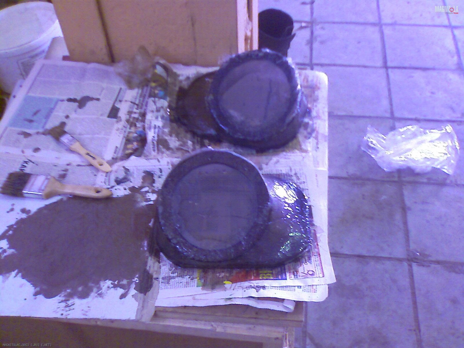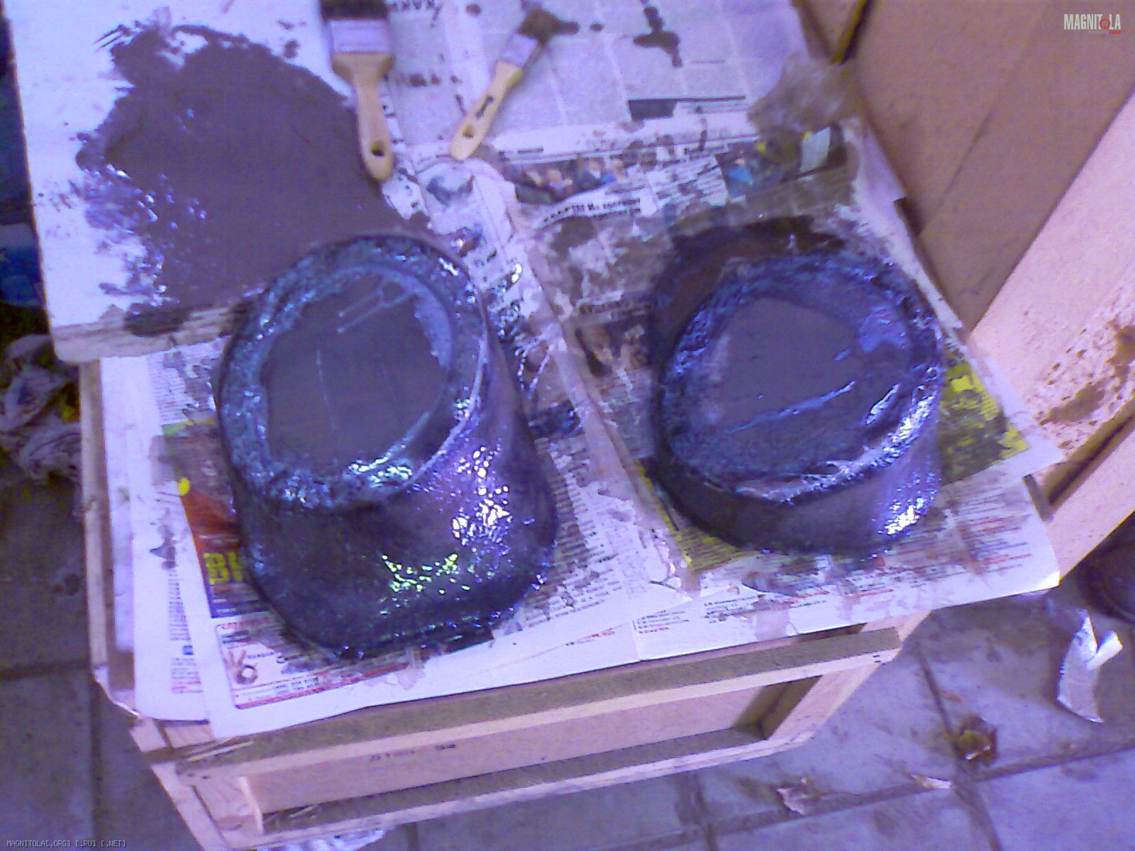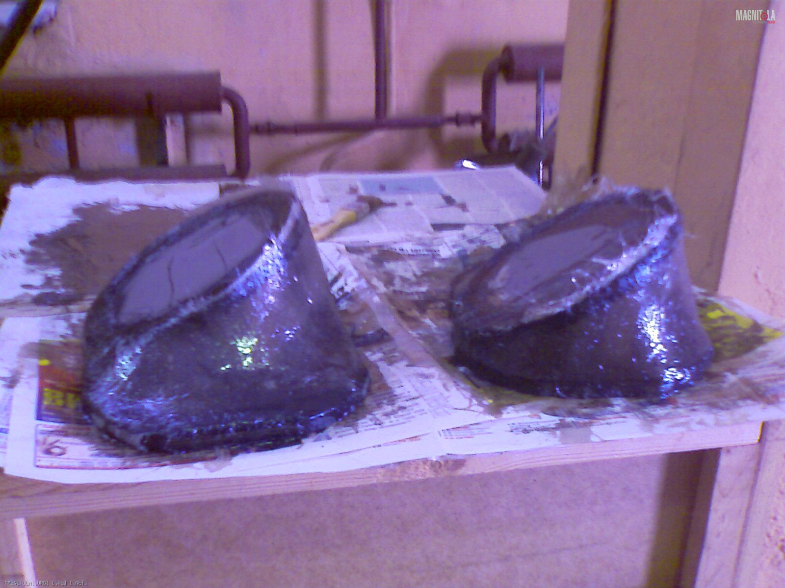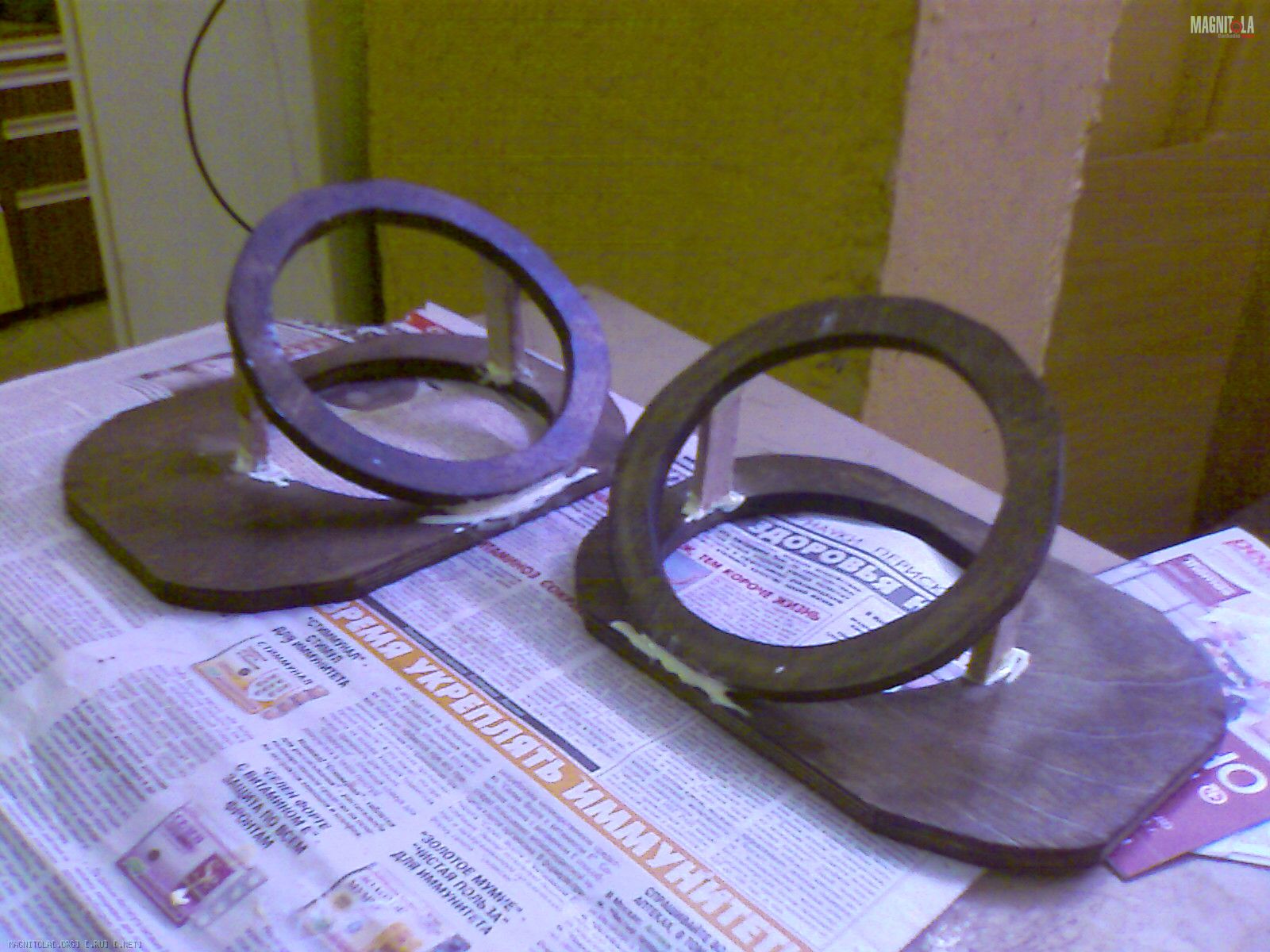 Мне понадобилось кусок фанеры 12мм,саморезы,морилка,ножницы,полиэфирки где то грамм 600,кисточек 3 штуки,чулки и стекломат м300 (потратил примерно кусок 0.4м2).Вырезал кольцо и проставку под подиумы.Далее обработал морилкой.Сначала склеил конструкцию клеем,но когда натягивал чулок с силой,она развалиласьгы ГЫ гы(поторопился).Вложение 192617пришлось посадить на саморезыВложение 192619.Размешал полиэфирку с отвердителем и приступил к нанесению первого слоя,потом подождал минут 15,снова размешал состав и уже новой кисточкой пропитывал стекломат кусочками и укладывал на подиум и так в 2 слоя.Вложение 192621Вложение 192623Вложение 192625на следующий день вот что получилось Вложение 192627Вложение 192629.Потом нужно их отшкурить и отшпаклевать и обтянуть или покрасить( чего я не сделал,т.к. мне хотелось поскорее послушать свою музычку,доделаю в ближайшее время их=).