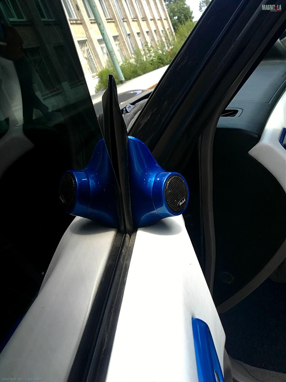До нынешних VIFA были инсталлированы "пищалки" от MAC-audio. Не обошлось без эксперимента с их "вживлением". Шпатлевка с стеклопластиком и любимая краска - всего то;) Тяжело было их разломать (физически и морально), когда потребовались треугольники для новых подиумов.