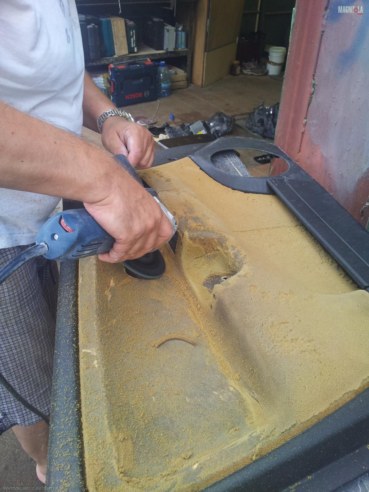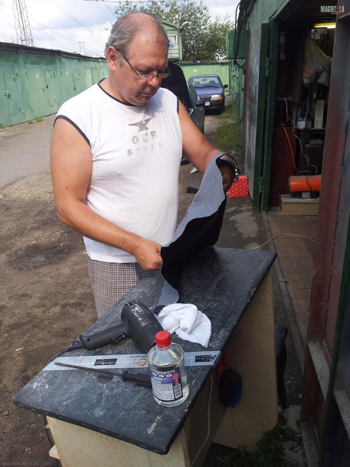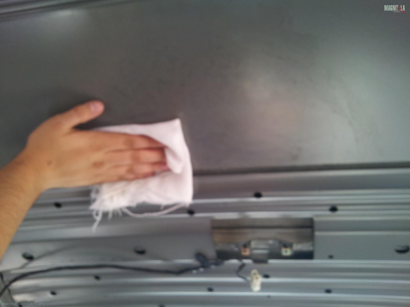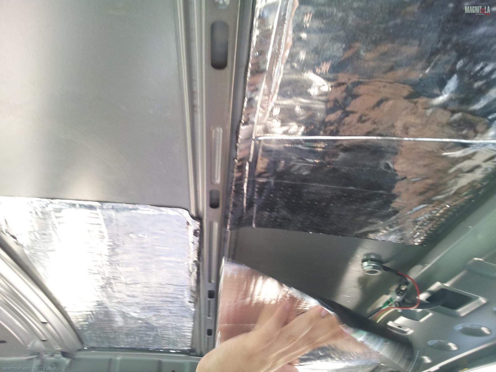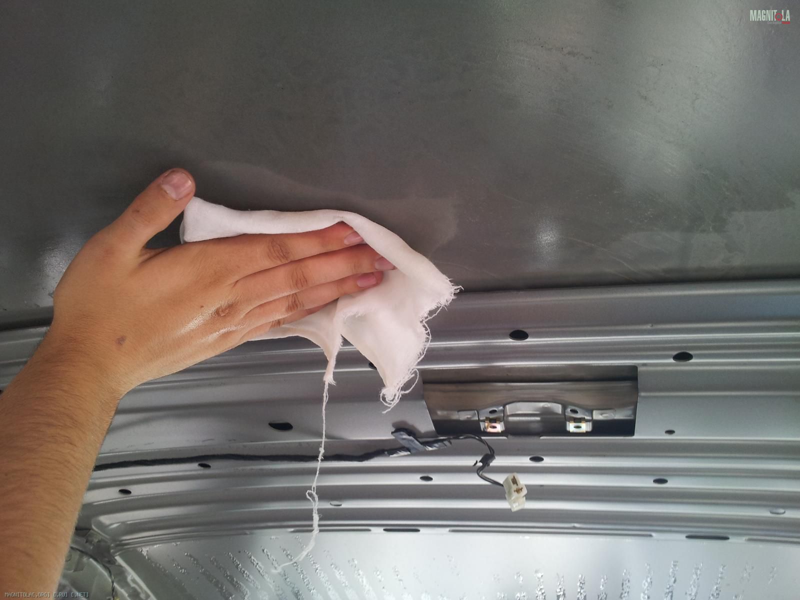 Потом была снята крыша, удалена штатная шумка и снят клей.