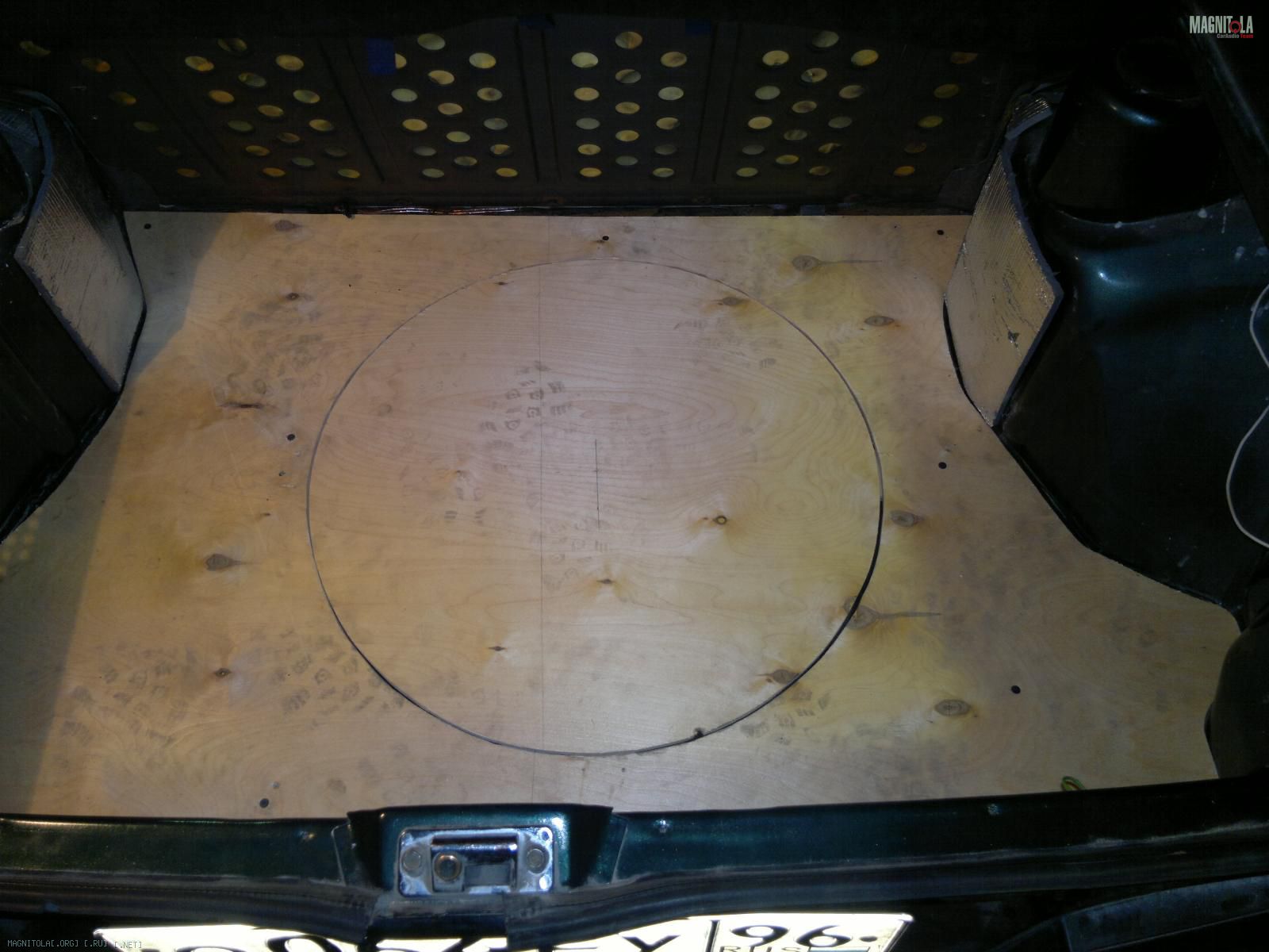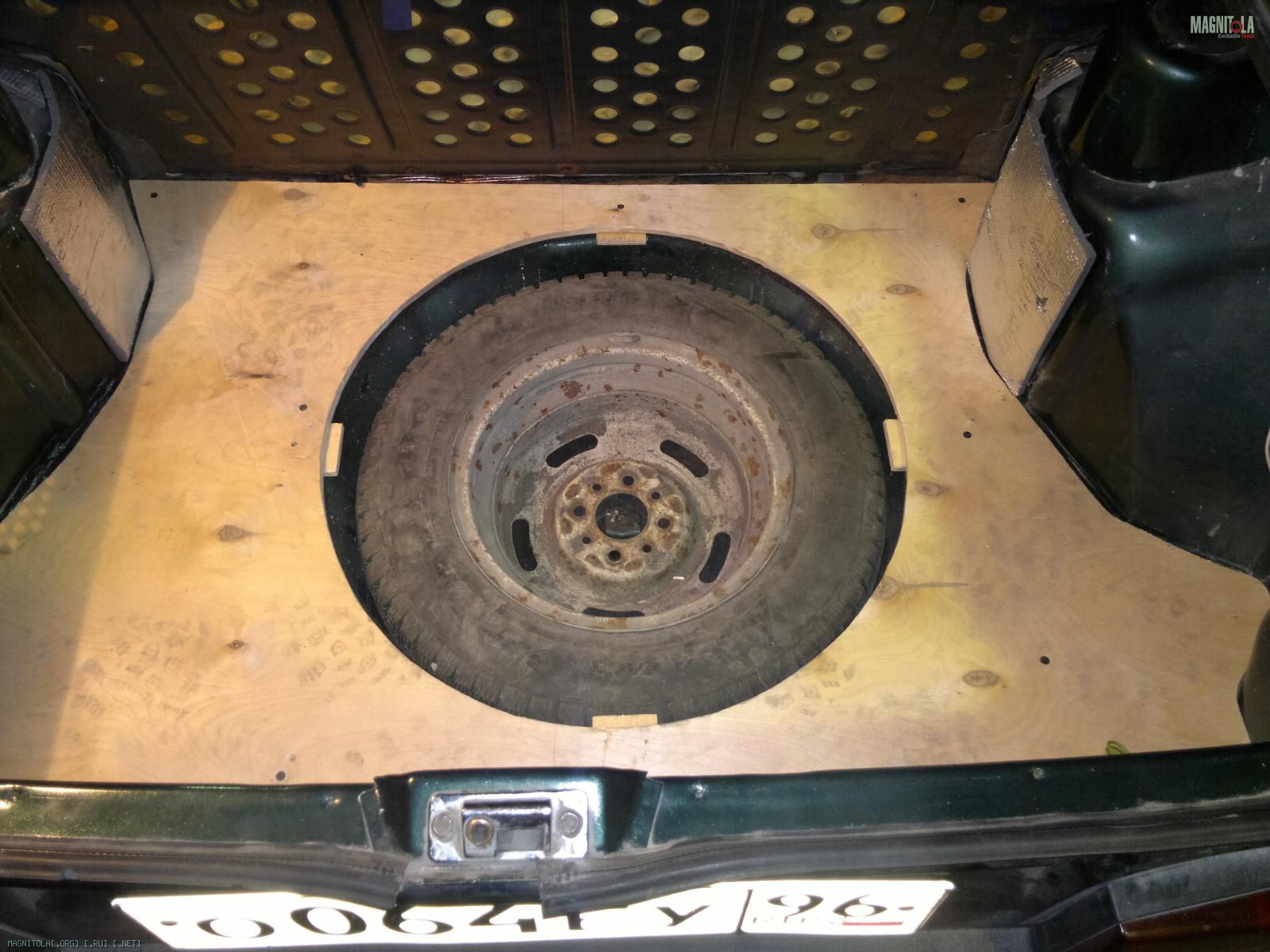 Пол в багажнике делал из 10 мм фанеры, под запаску был вырезан круг