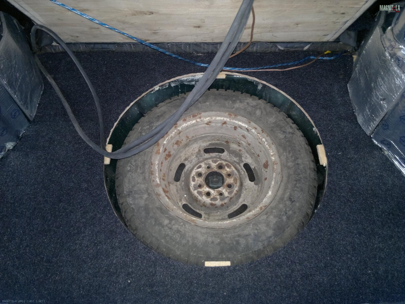 для удобства, что бы достать запаску, саб закрепил на спинку заднего сидения, откидывается со спинкой