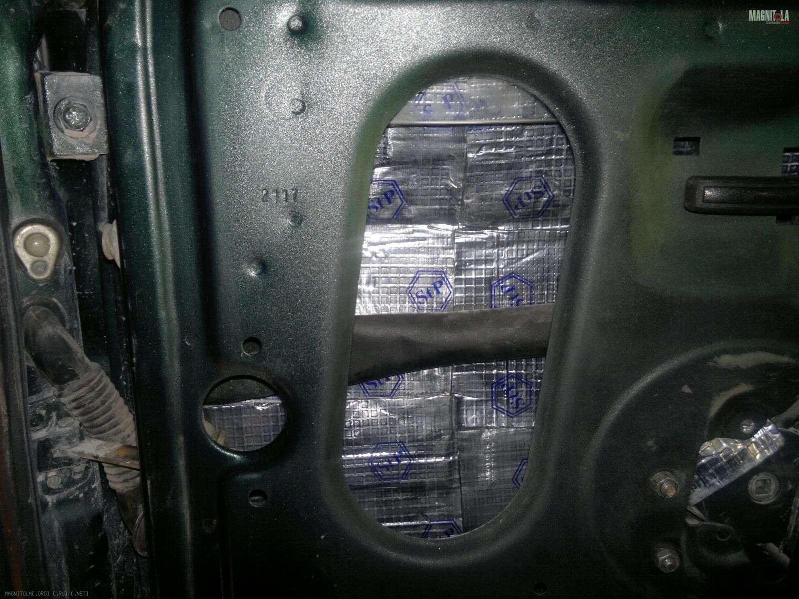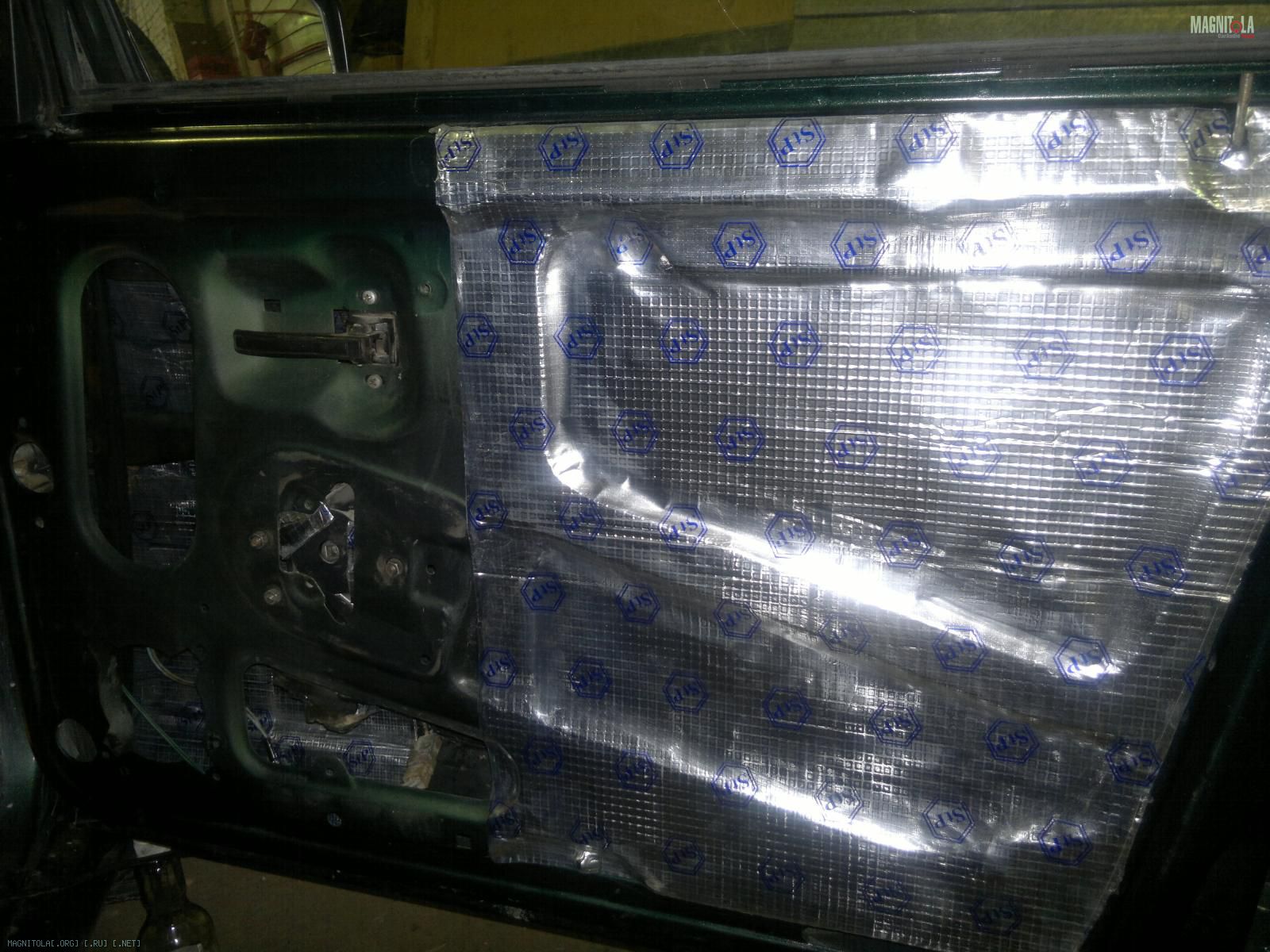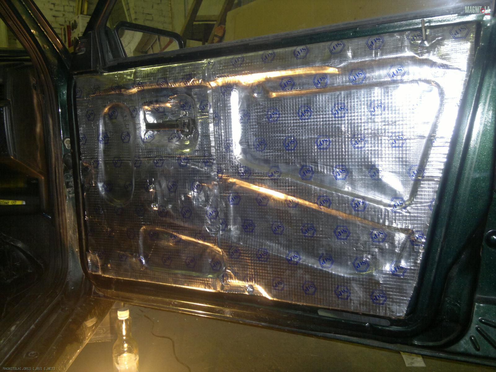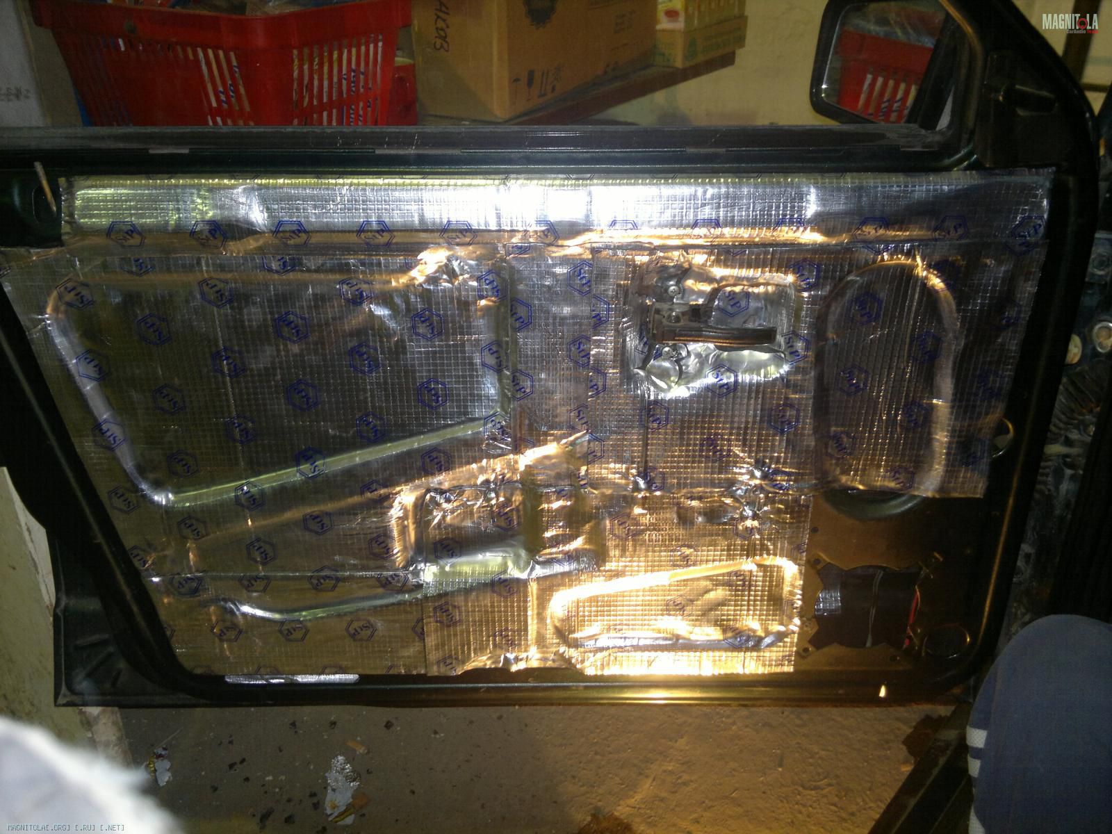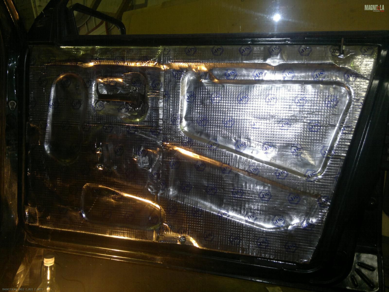 двери вибропласт М2, сплен 4 мм и притянул обшивку ####онами с саморезами.
