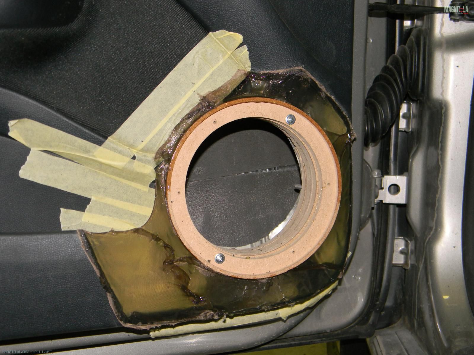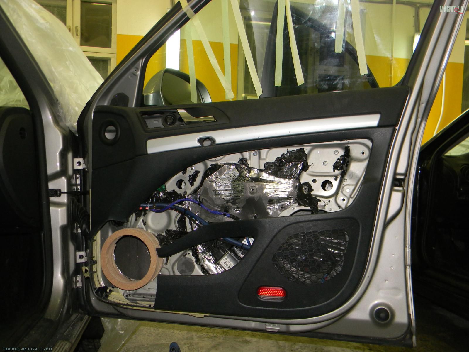 Вот и я решил вынести на свет свою инсталяцию.Долго решался на перенос мидов в переднюю часть дверей и наконец год назад сделал шаг вперед,а сделав один,делай и второй.Шумку делал сам(материалом СГМ),двери,пол,багажник,крышу,торпеду не снимал,арки снаружи тоже пока не делал.