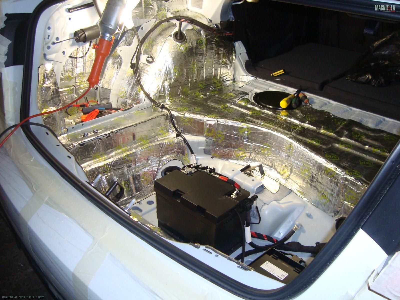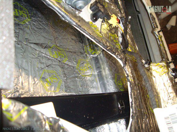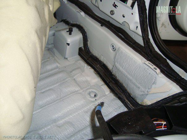 Начнем с шви и протяжки проводов. вибро 2 слоя голда+битопласт 10. все провода без исключения уложены в змейку. Проводка на полу зафиксирована термоклеем.