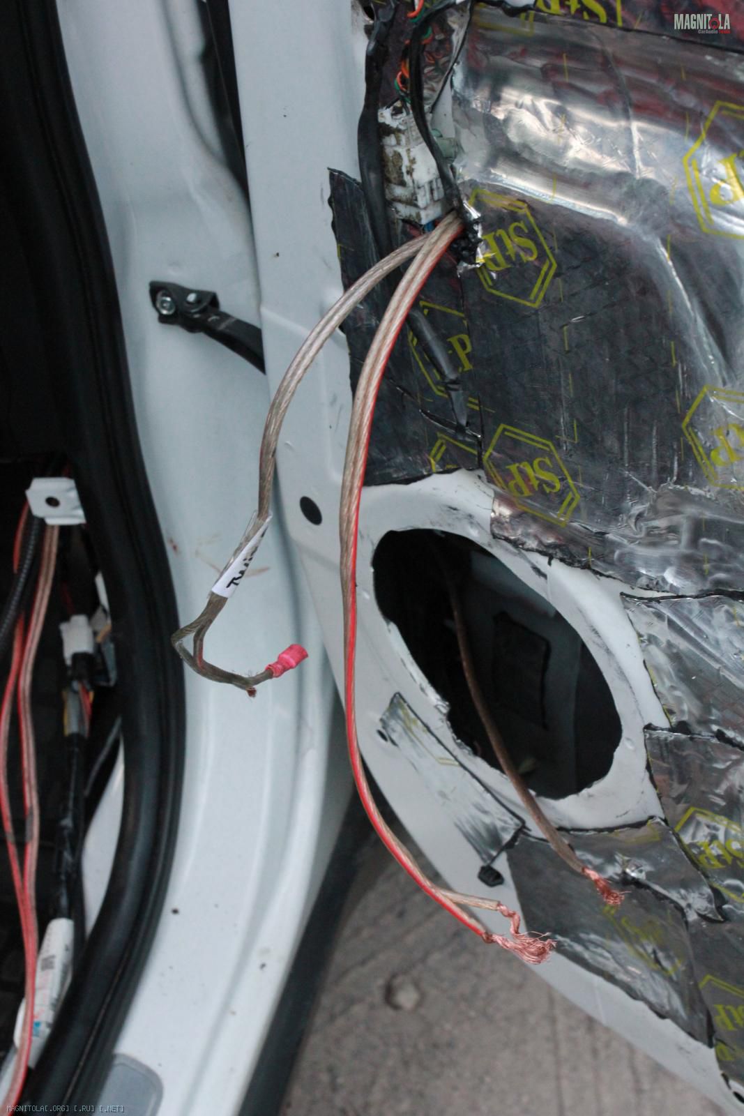 Кстати, в дверь протянул сразу провода для СЧ и ВЧ - но пока сами не знаем, куда и как лепить динамики - то ли всё в уголок зеркала, то ли СЧ - в уголок, а ВЧ - на стойку. В общем, если что - вытянуть акустичку и перепроложить не проблема.
