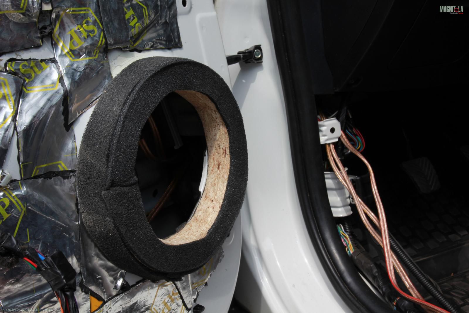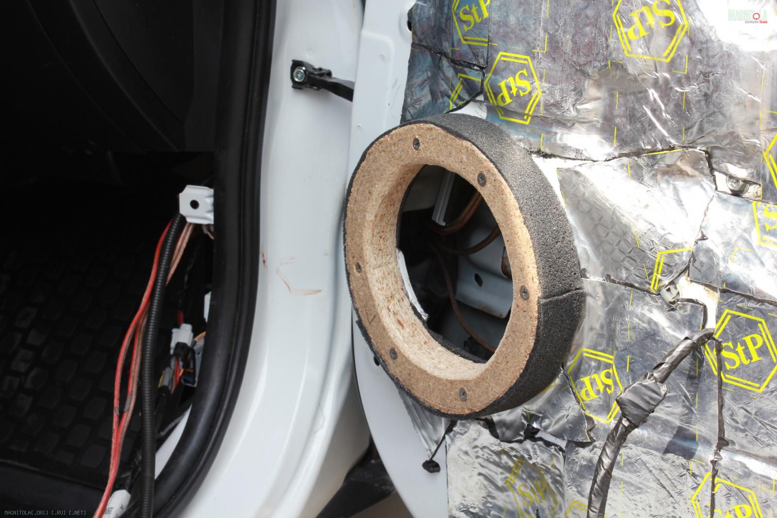 Сегодня закончили с дверьми, установил через 28мм проставки мидбасы, успел даже протянуть минус от АКБ: из-под капота в салон - через технологическое отверстие, находящееся почти по центру моторного щита (на последнем фото видно), через которое протянуты разные провода. Сила - КГ25, завтра планирую вплотную заняться этим вопросом.