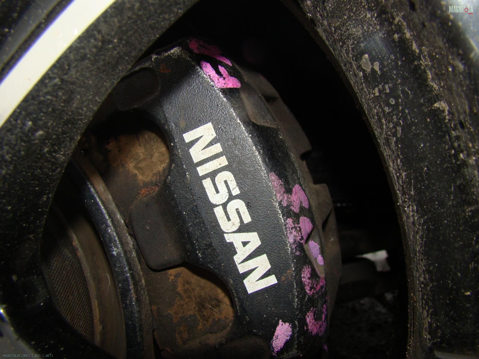 А вот и приятная доработка: передние тормоза от турбового Лауреля. Увеличенный в диаметре и более толстый тормозной диск, двухпоршневые суппорта. И, если я не ошибаюсь, суппорта даже алюминиевые, судя по тому как остывают. Осталось только стереть гламурные надписи с контрактных запчастей ))) Кстати, весь комплект в ОЧЕНЬ хорошем состоянии, человек который забирал чуть себе их не оставил ))) Теперь с этими тормозами я понял унылость моих старых. Для моей двушки их за глаза.