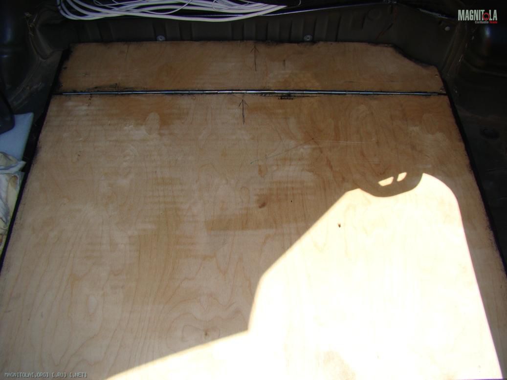 Пока начал с центральной части. Так называемую докатку (банан) я давно заменил полноразмерной запаской, а вот штатный оргалитовый пол так и был торчащим бугром по центру багажника. Решил сделать фальшпол, но не для усилителей. Усилители буду размещаться по бокам багажника.