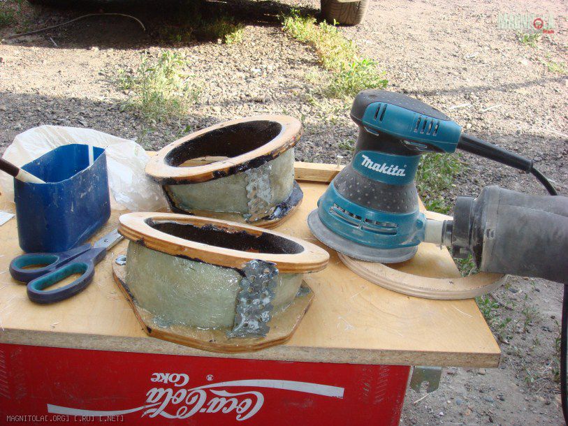 Сегодня какой-то не рабочий день был. Шлифанул подики шлифмашинкой, дабы убрать лишнюю смолу на поверхности. Подправил кое-где косячки смолой и матом, пропитал всю фанеру смолой, чтоб влага не испортила мне подики.