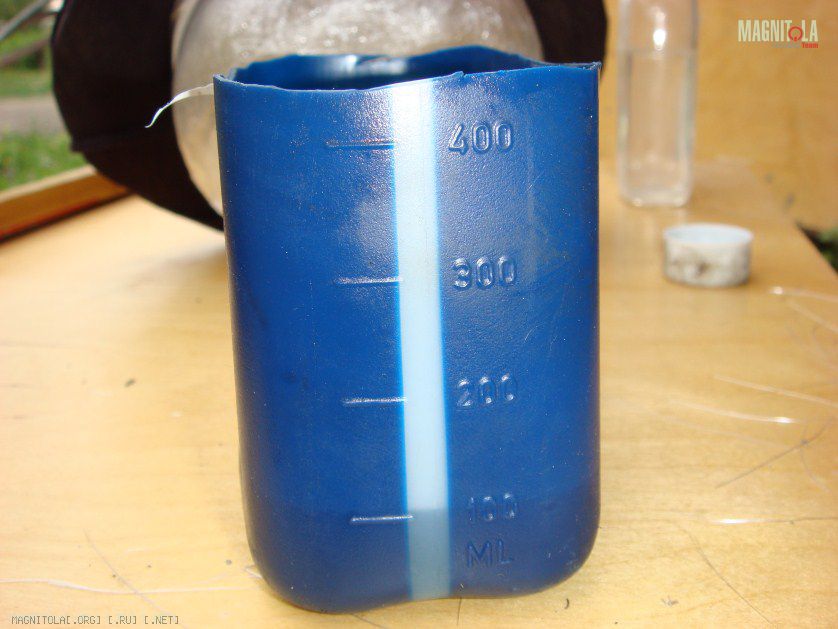 Принялся мазать. прикупил кисточки 3 "жучки" и 3 " мышки" ( модель кисточек такие). Нарезал полосками стекломат. Накладывал и пропитывал. Лил в мерный стаканчик по 100 мл. смолы 3 мл. бутанокса ( отвердитель ). Всего на один подиум ушло 200 мл. смолы. Наложил мата слоёв 7-8 это около 0,9-1 см получилось. Залил нафиг все свои усатые гайки.