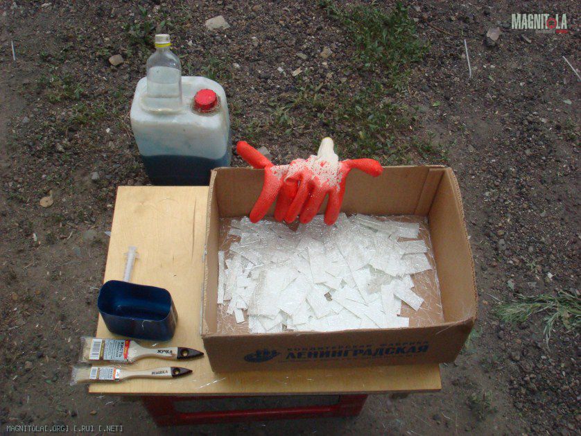 Достал оставшийся материал с прошлого года ( когда делал стелс ). Полиэфирка 2,5 литра и стекломат 600 2 метра.
