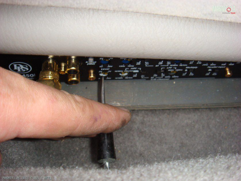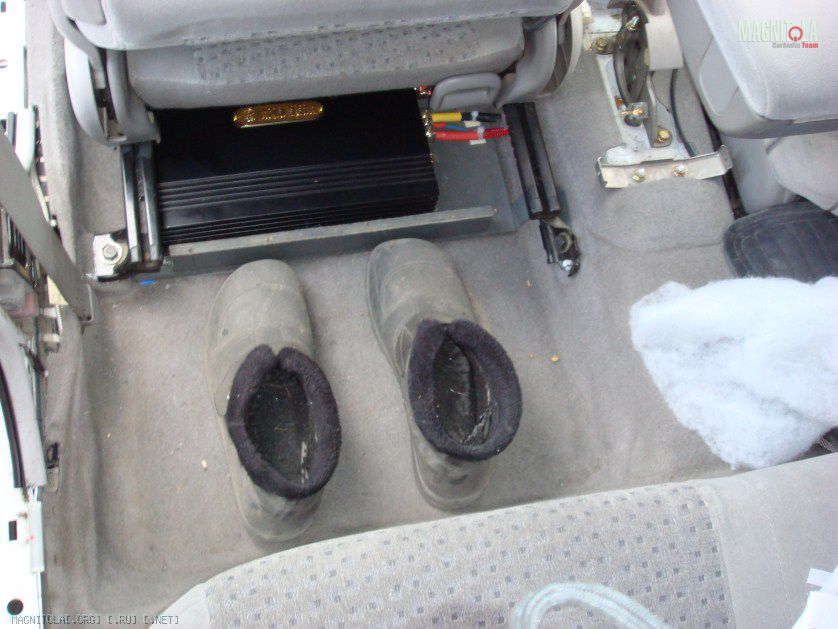 пока смола сохла, поставил на место пассажирское сиденье. Очково было ставить, у меня подушка безобасности в сиденье, и для того чтобы усилку было комфортно под сиденьем пришлось удлинить ровод AIRBAG на 20 см. Я понимал что при увилечении длины провода ничего не могло произойти, но подключал коннектор с некоторой опаской. В итоге все нормуль. Зазор между усилком и сидухой около 1 см. в самом минимальном зазоре. Пассажирам места сзади под ноги хватит. Мои калоши 46 размера входят номано. Вопрос теперь что делать с ковриком, либо отрезать либо извернуться и положить каряво. Все равно очень оедко вожу пассажиров. Поддува в ноги теплого воздуха они тоже лишились. Усилитель нужней. Место для настройки усилка осталось около 6-8 см. Нашел отвертку маленькую и сделал из неё специальную аудиофильскую настроечную. :laugh1: