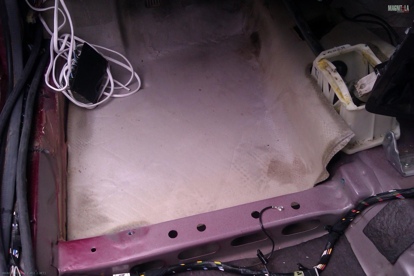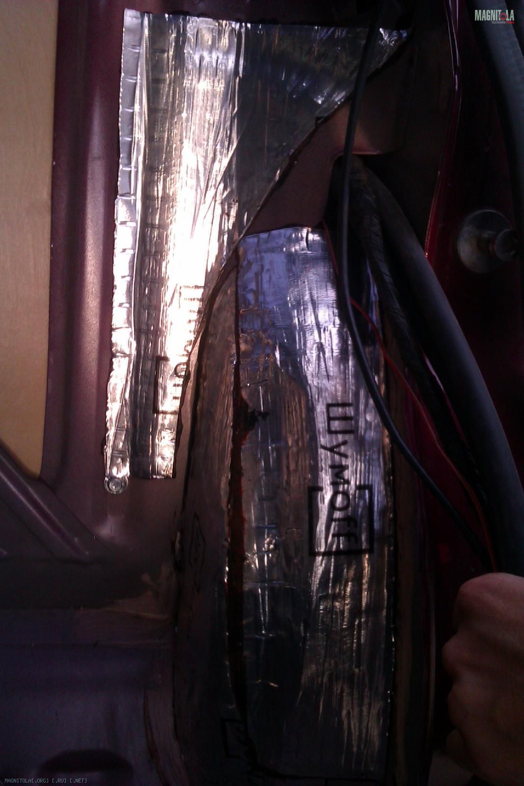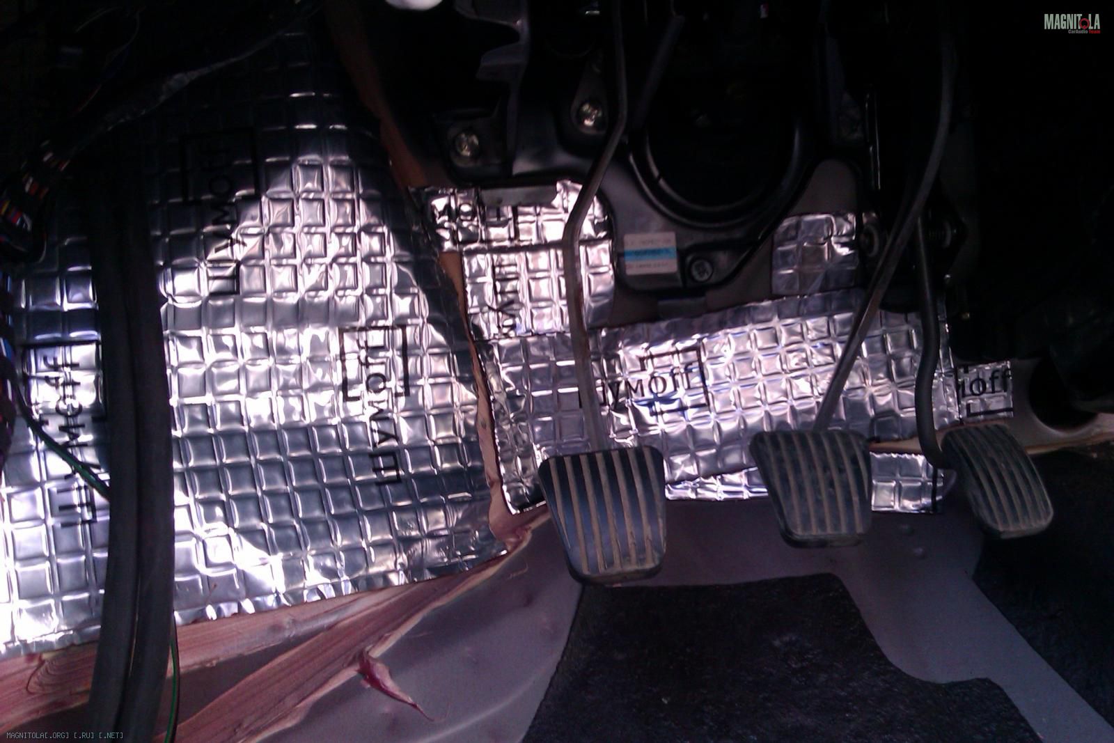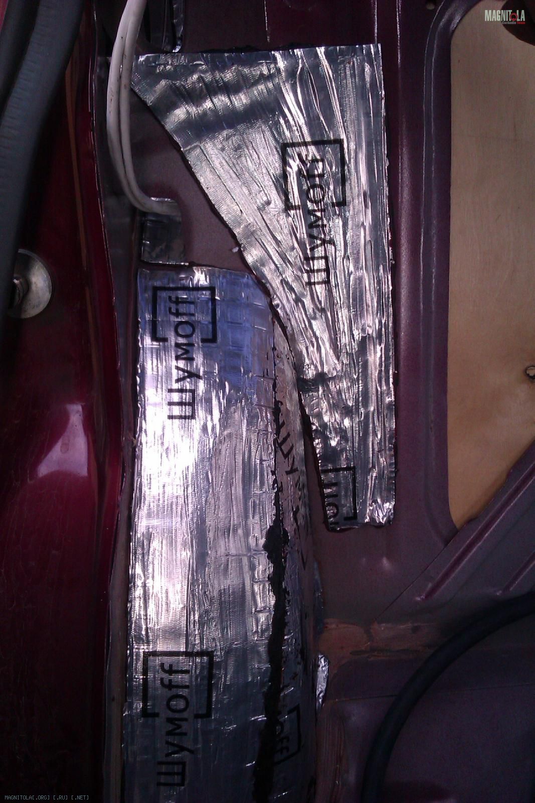 Убрал поролон. Пытался удалить эту непонятную черную субстанцию, но это очень тяжело даже с феном. Поэтому решил виброизоляцию прикатать поверх заводской шумки. На арки и пергородку ушло Шумофф Микс-Ф - 5 листов, на пол Шумофф М2 - 8 листов и STP Сильвер2 - 2 листа: